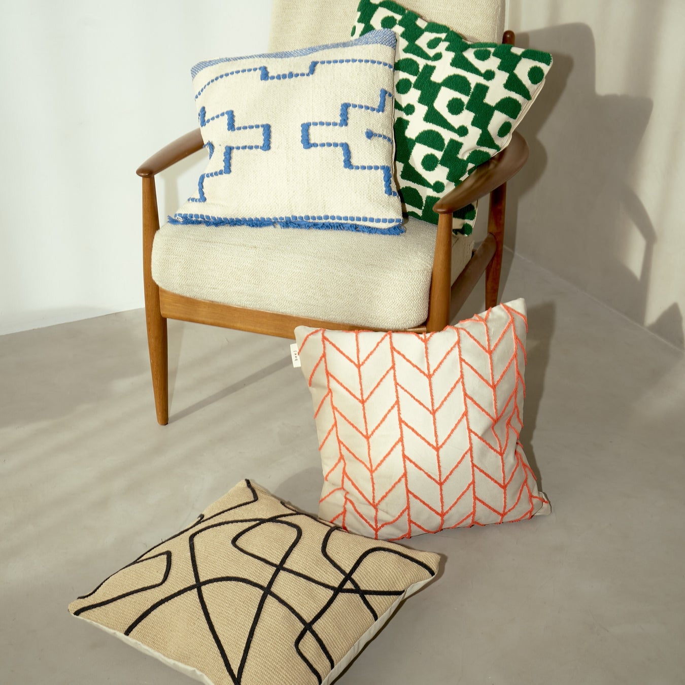 インドの生産者さんたちがひとつひとつ丁寧につくるテキスタイルやハンドクラフトを身近に感じられるbeejからは、お部屋のアクセントにぴったりなクッションカバーやラグが店頭に並びます。