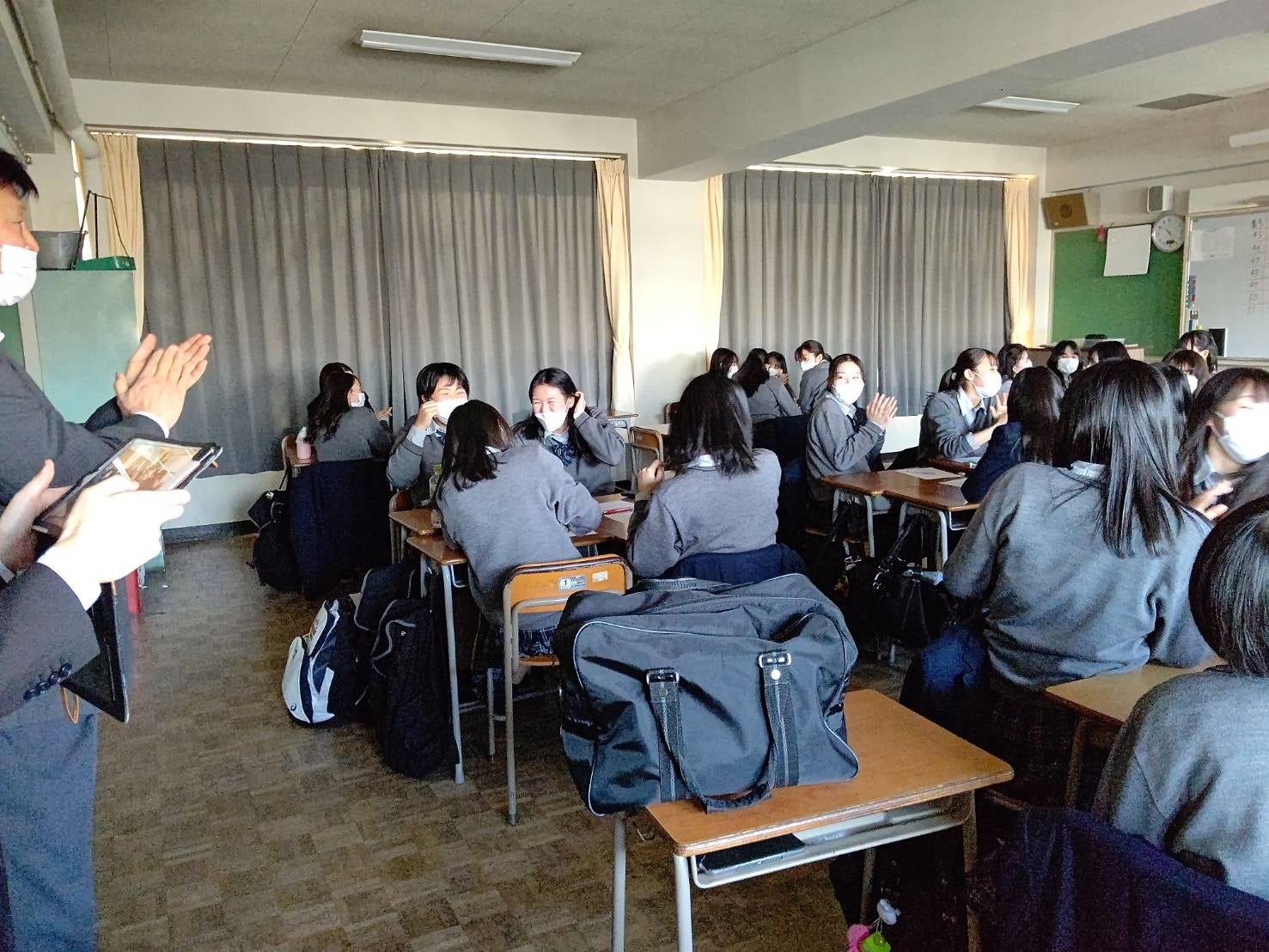 こちらのイベントについて、大阪夕陽丘学園高等学校の生徒からは、「学校生活残りわずかな時に、学校で行事ができて良かった!先生方ありがとうございます。いい思い出を作れました。」「チームで話しあいながらできて楽しかった。」「卒業した後も思い出に残ると思う。」と大好評。教員の方からも「生徒が楽しそうにしていたので、実施できて良かったと思います。」と言っていただけました。卒業を控えた高校3年生の生徒約500人が同時参加し、時には集中して、時には笑いながら、一丸となって公演に臨んでくれた姿に、SCRAPとしてもコロナ禍におけるエンターテインメントの価値を、新たに発信することに成功したという確かな手応えを感じる公演となりました。