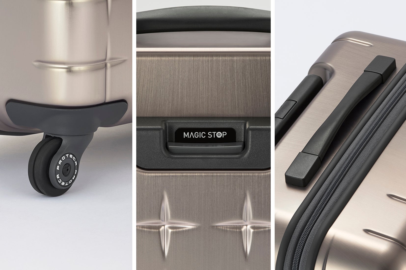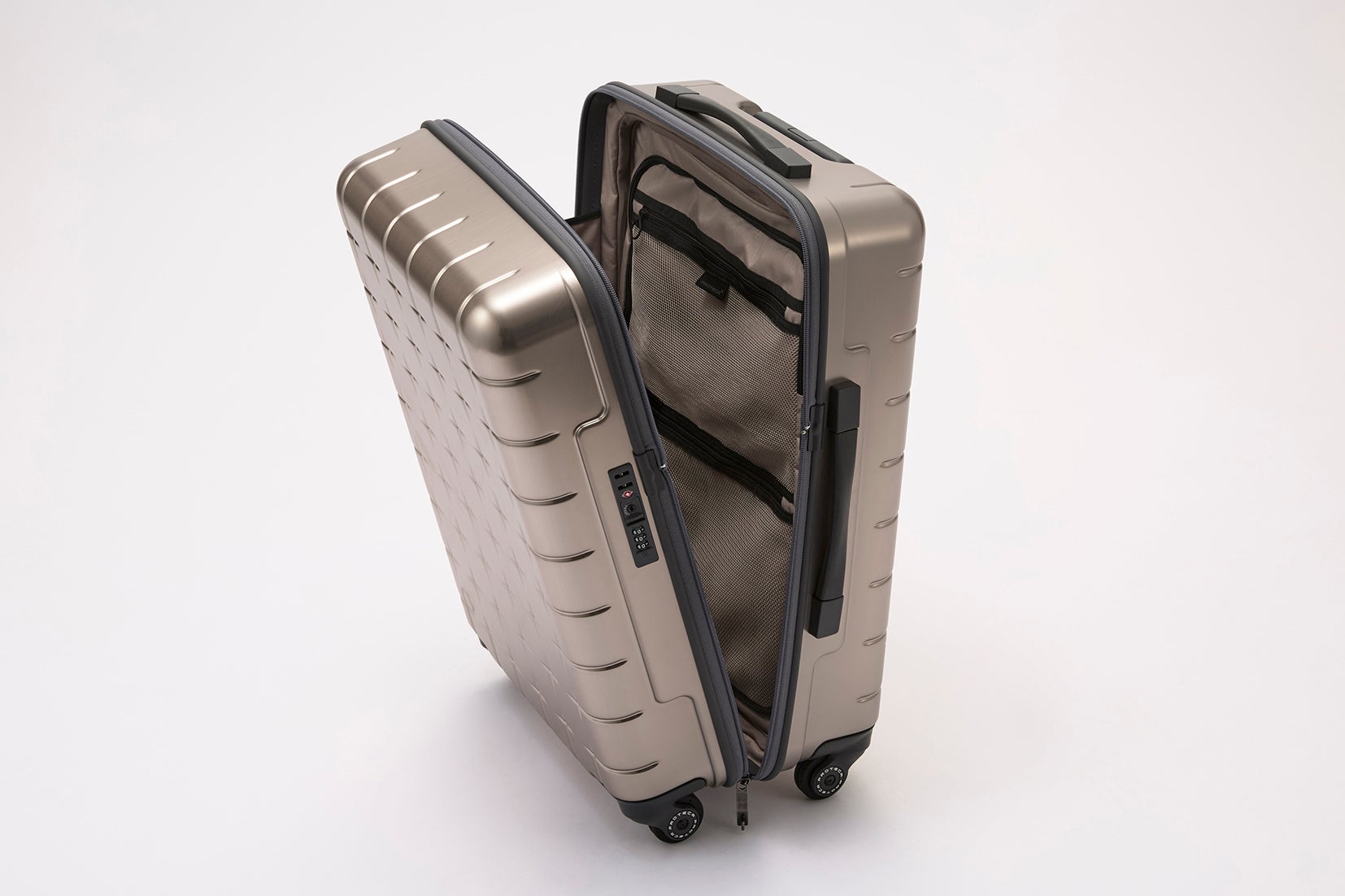 「プロテカ」の360°どこからでも開く新発想スーツケースに、金属の質感を表現した限定モデル登場