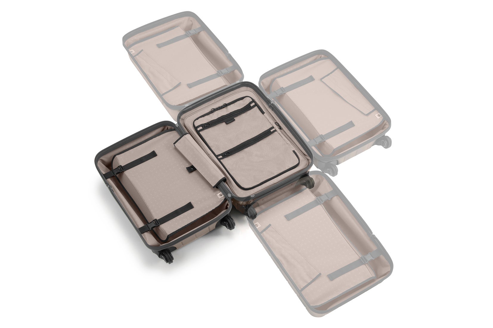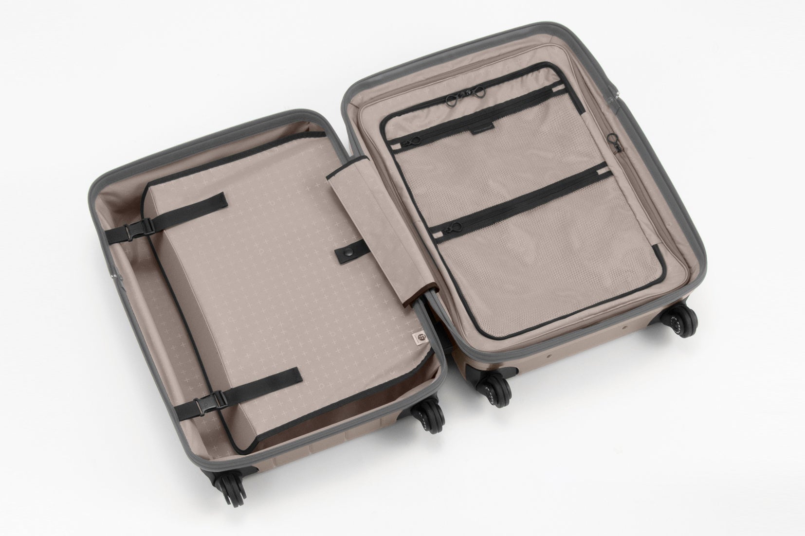 蓋側には仕切りを、底側には拡張機能を備えており、簡単に内装仕様を切り替えられます。