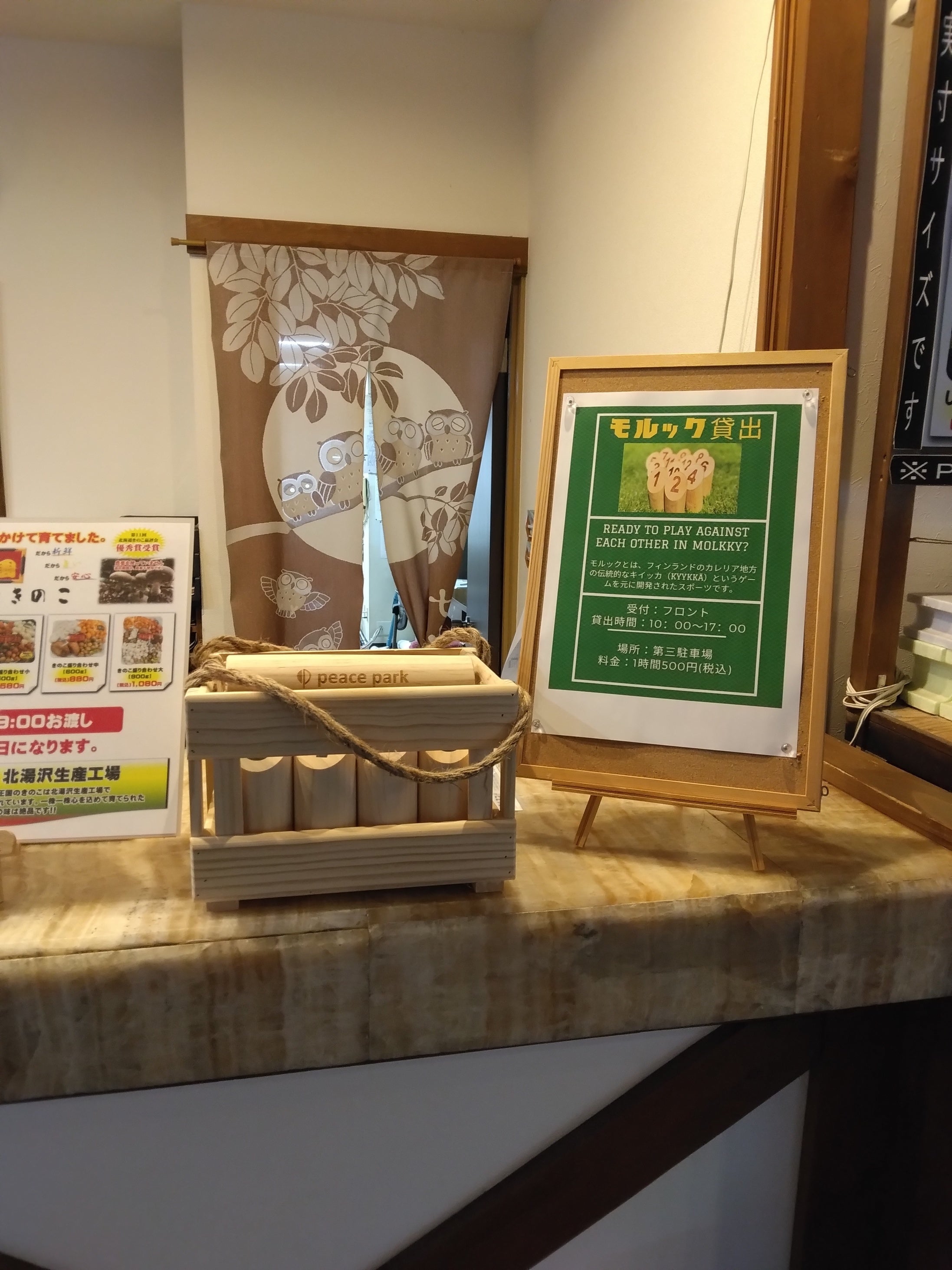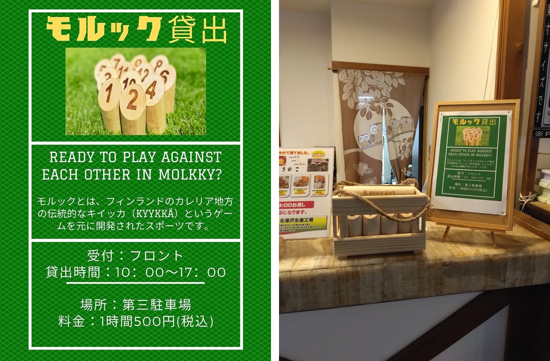 湯元ホロホロ山荘では、北欧発祥の「モルック」の貸出をはじめました