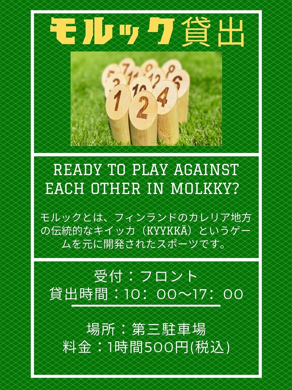 今、話題沸騰中の「モルック」の貸出を始めました!