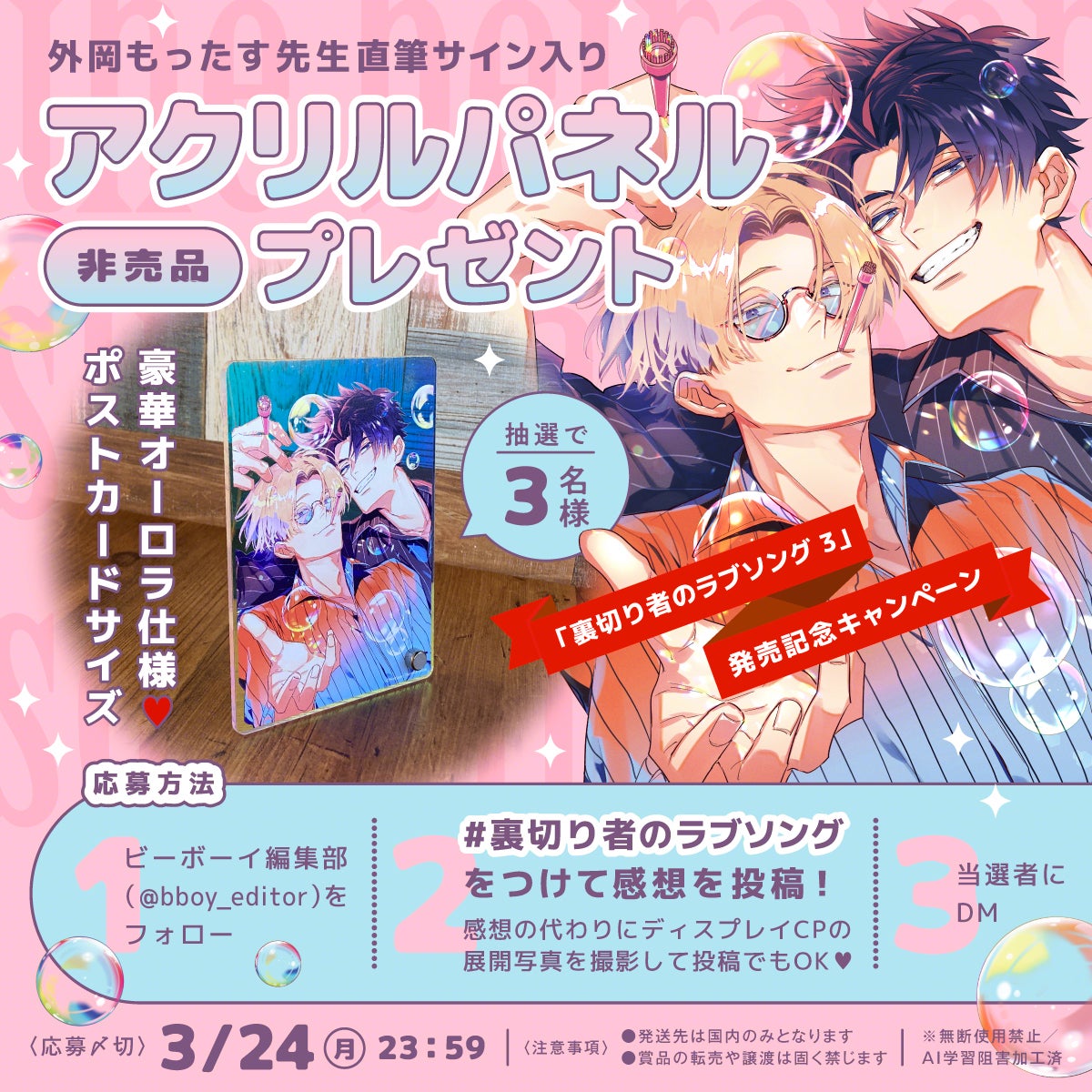 裏切り者のラブソング コミックス最新3巻の発売を記念して、キャンペーンを開催!