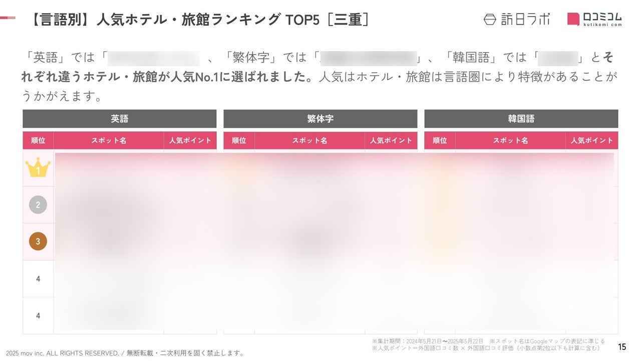 そのほか、言語別ランキングや口コミ分析の詳細は、調査資料をご覧ください。