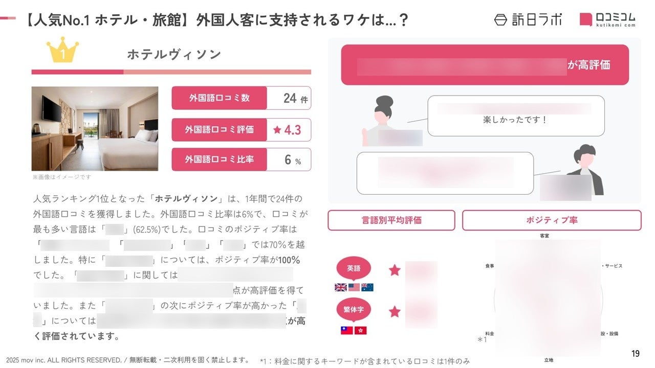 人気ホテル・旅館に寄せられた外国語口コミを分析