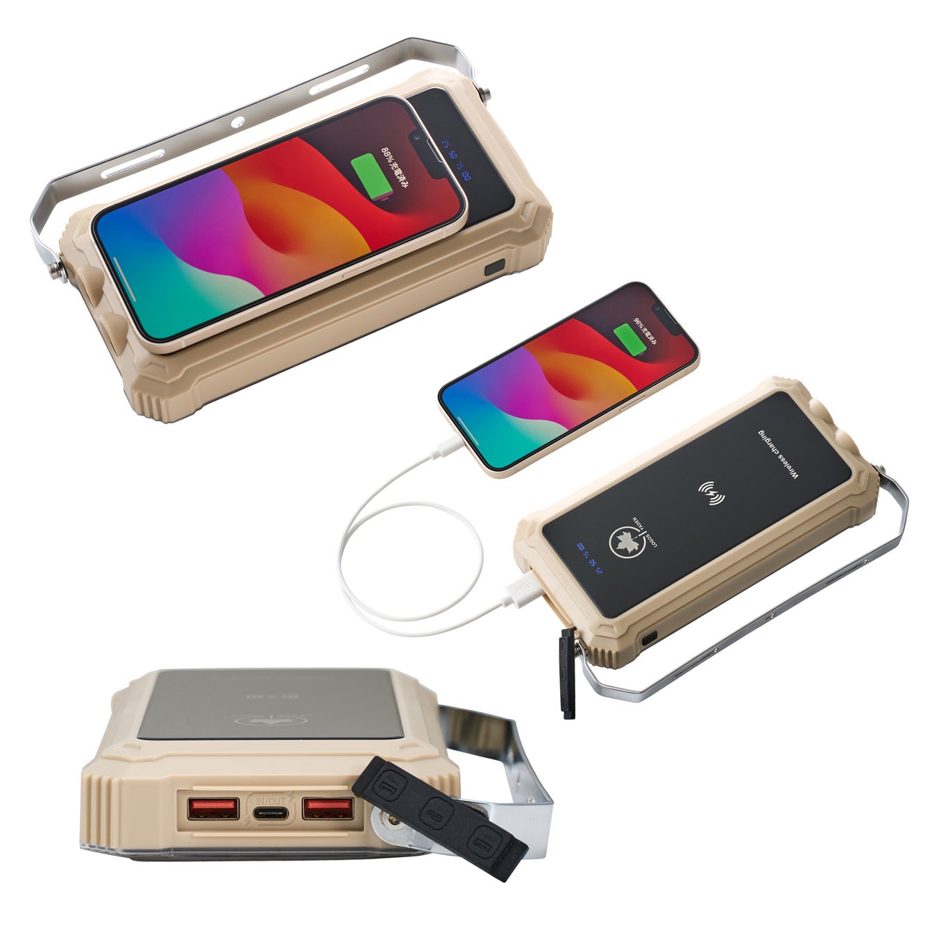 今回ピックアップする「野電 パワーストックランタン・ワイヤレス」は、野外でも使用可能な電化製品「野電」シリーズで、周囲を明るく照らす超高輝度の照明機能と大容量のパワーバンクを搭載し、ワイヤレス充電にも対応する多機能なランタンです。