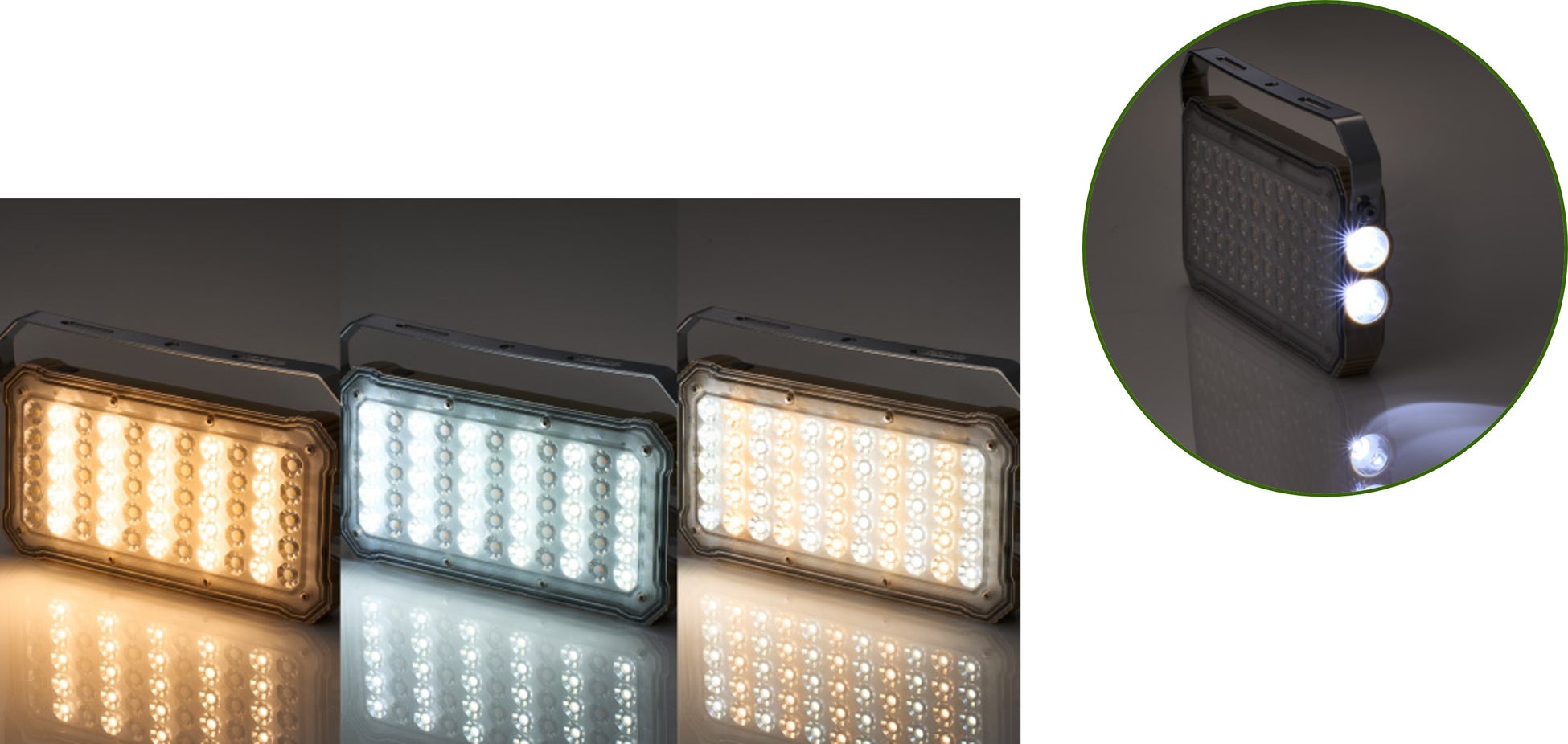 「2000・スマートワイヤレス」は暖色、白色、中間色の3色の点灯モードに切り替え可能で、明るさは4段階に調節できる。側面に懐中電灯モードが搭載されており、非常時に役立つ点滅モードも装備している。「1000・ボックスワイヤレス」は点灯モードも明るさも無段階調節が可能。
