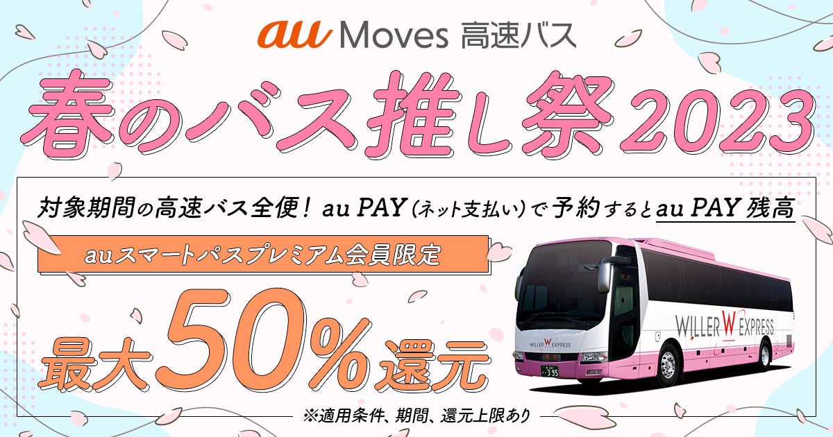 【auスマートパスプレミアム会員】なら最大50%還元!「au Moves 高速バス 春のバス推し祭2023」「au Moves レンタカー 春のさきとくキャンペーン」開催