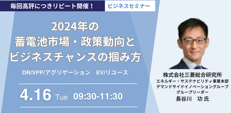 【JPIセミナー】「2024年の蓄電池市場・政策動向とビジネスチャンスの掴み方」4月16日(火)開催