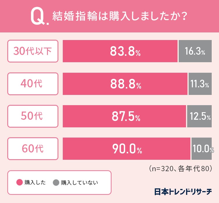 まずは結婚指輪を購入したか、年代別に調査してみました。
