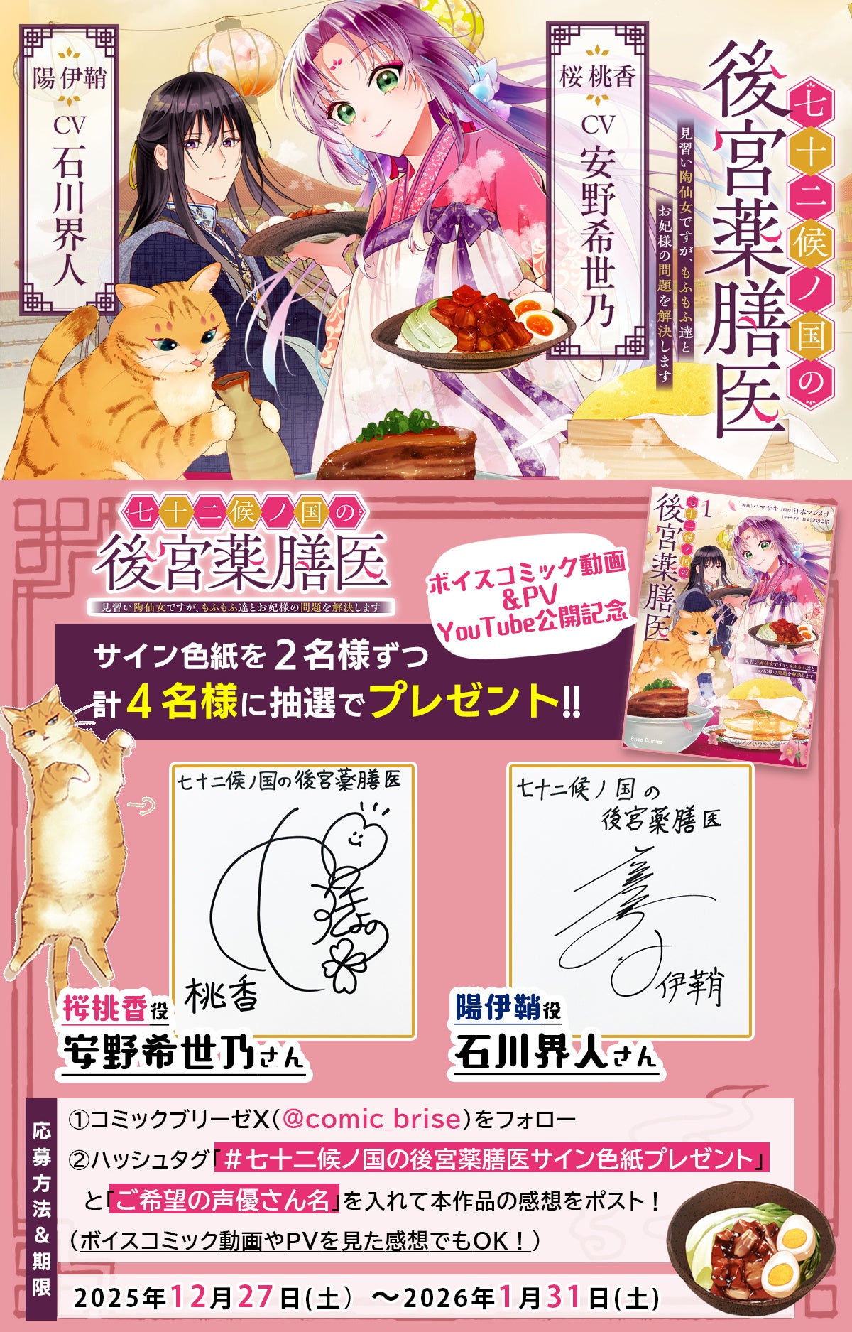 ②ハッシュタグ「#七十二候ノ国の後宮薬膳医サイン色紙プレゼント」と