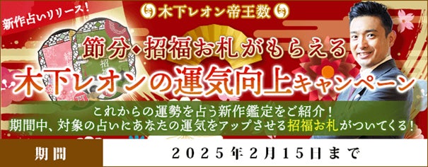 テレシスネットワーク株式会社(本社:東京都港区、代表取締役:鷹石惠充 https://www.telsys.co.jp/)は、2025年1月31日より、月額公式サイト『木下レオン◆帝王数』にて、『節分◆招福お札がもらえる木下レオンの運気向上キャンペーン』を公開いたしました。