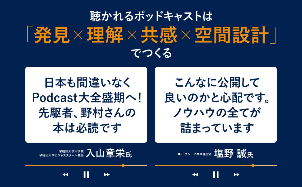 著者の野村高文氏は、音声コンテンツ専門の制作会社「Podcast Studio Chronicle」を率い、自身が制作した番組で「JAPAN PODCAST AWARDS」のベストナレッジ賞を2年連続受賞、これまで4つの番組を書籍化へと導いたヒットメーカーです。