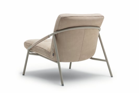 単体でも洗練された存在感を放つ、エレガントなアームチェア「LUKE」。「JAZ」をはじめとするロルフベンツのソファと美しく調和し、空間に上質なアクセントを添えます。シルクグレーまたはブラックのメタルフレームが、浮遊感のある座面と背もたれを際立たせ、軽やかでありながら温かみのあるフォルムを生み出します。さらに、レザーに施された繊細なステッチが、クラシカルでエレガントな印象をより一層引き立てます。
