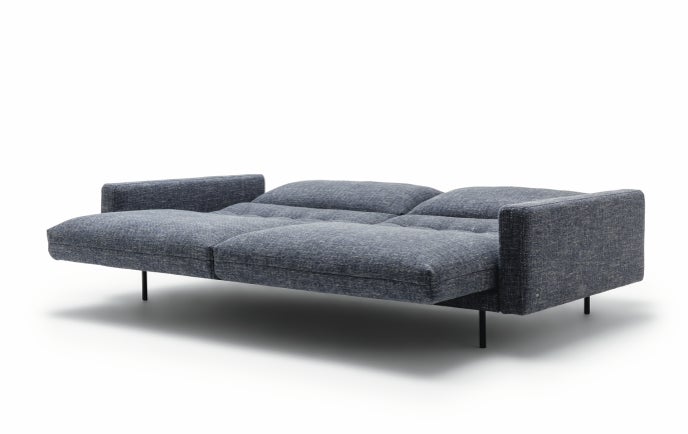 フランスのデザイナー、Toan Nguyen(トアン・グエン)とロルフベンツの最新コラボレーションから誕生した「JAZ」。自由な空間が生み出す軽やかさを追求し、開放感あふれるモダンなリビングスタイルを表現しました。シャープな印象を与えるアルミニウム製フレームに支えられたシートクッションと、背もたれとの間に設けられたゆとりが、視覚的な軽やかさと空間の広がりを演出します。さらに、バックレストとアーム部分はそれぞれ10cm拡張することが可能。奥行きのある座面が生まれることで、より深くくつろげる快適性が得られます。