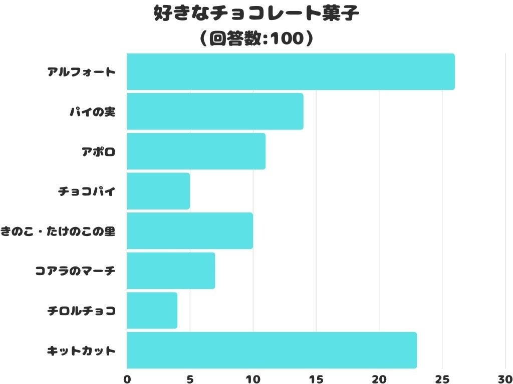 好きなチョコレート菓子をアンケートにて調査したところ、1位は「アルフォート」でした。