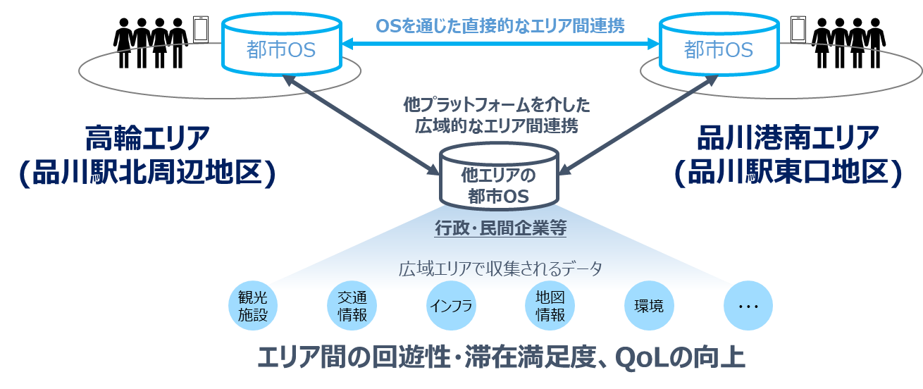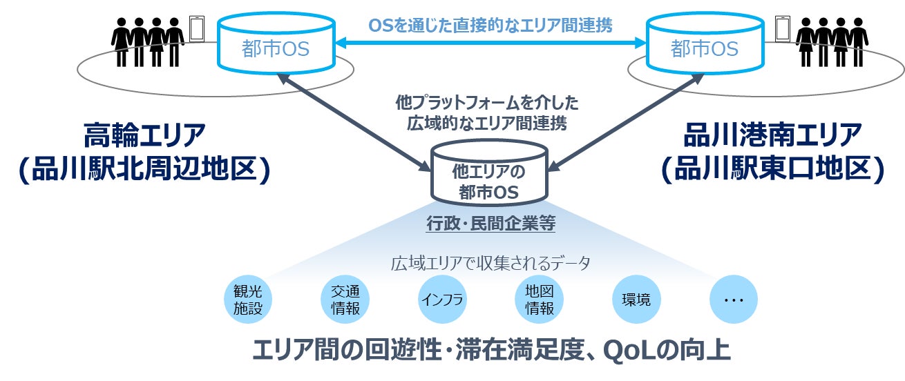 TAKANAWA GATEWAY CITYでの都市OSの実装に加え、本実証用に他エリアとの連携検証機能を共通の思想で構築し、将来のエリア間データ連携の準備を開始します。