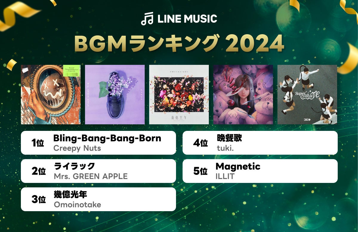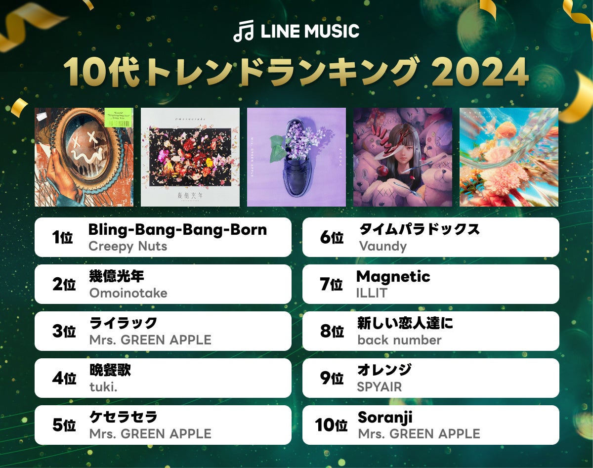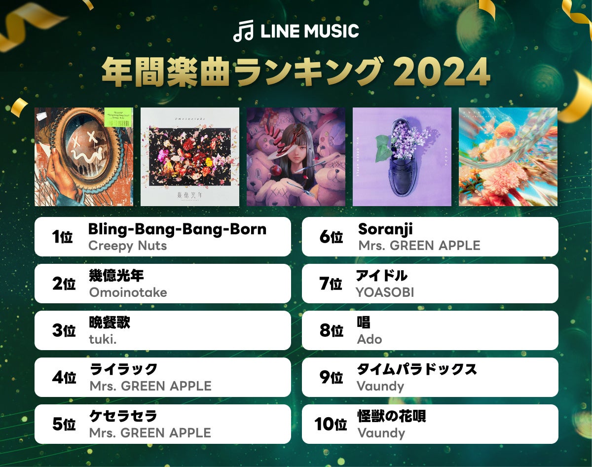 LINE MUSIC年間ランキング2024を発表!最も再生された楽曲はCreepy Nuts「Bling-Bang-Bang-Born」、最も再生されたアーティストはMrs. GREEN APPLE