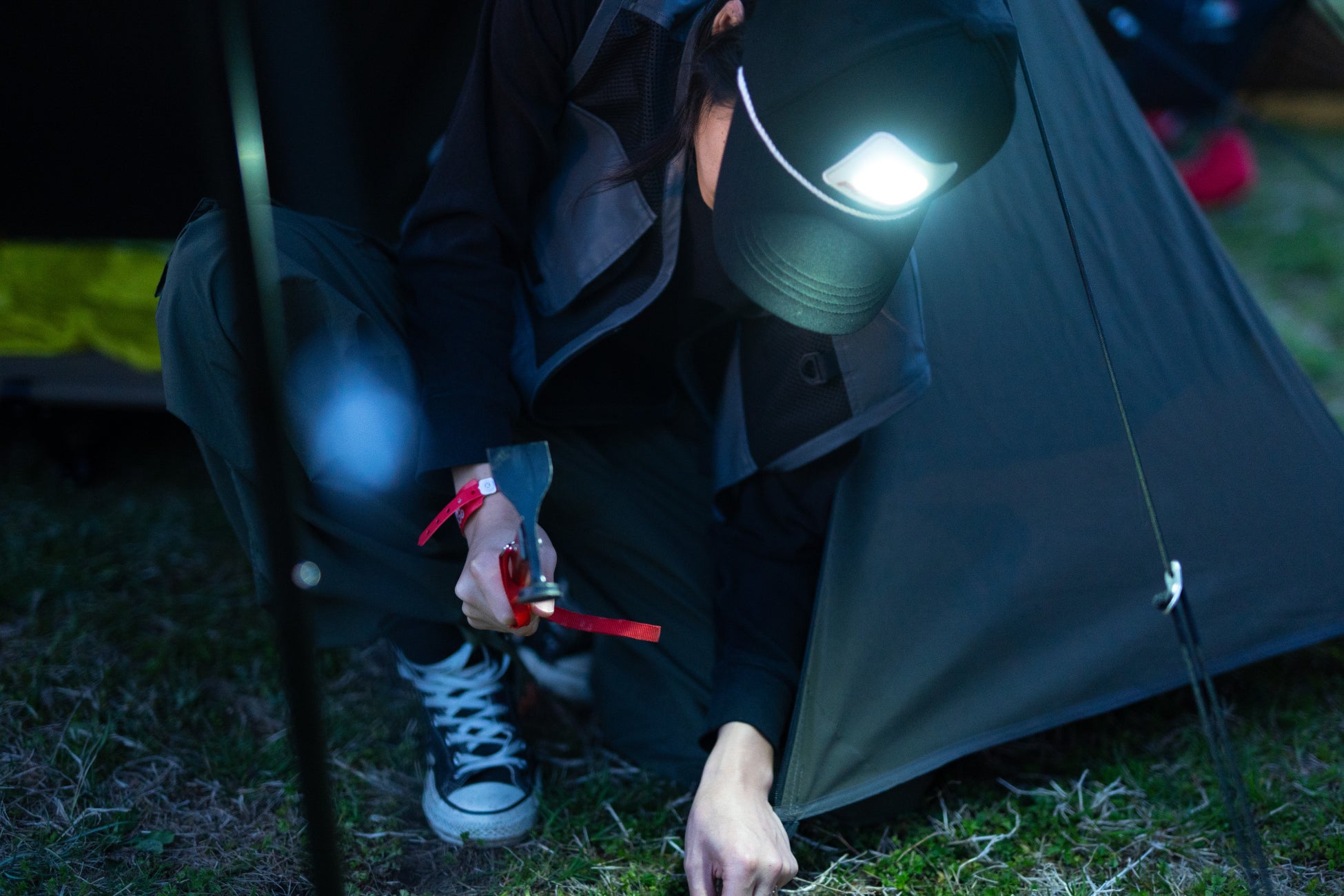 USB充電式ライトを搭載したシグネチャーキャップ。