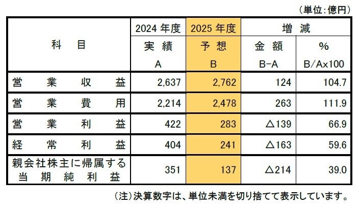 一方、労務単価や諸物価の高騰の影響に加え、需要増への対応の必要性、安全を最優先に老朽化した施設の修繕・更新等を進めていくことからコスト増加を想定しており、結果として、営業収益は5期連続の増収を想定するものの、営業利益、経常利益、親会社株主に帰属する当期純利益は前期比で減益となると想定しています。引き続きコストマネジメントを徹底し、業績予想の達成はもとより、利益の拡大に努めてまいります。