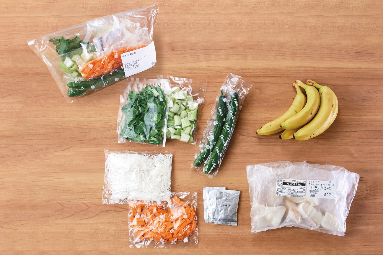 Oisixの管理栄養士が作成した昼食とおやつの献立と必要量のカット済み食材がセットで届く「手づくり給食ミールキット」。調理時間を1日2.5時間程度短縮が可能、食材費・人件費の総額を導入前に比べ18%※3削減可能です。献立には旬の食材や行事食も盛り込まれており、Oisix独自の基準をクリアした安心安全な食材の素材本来の味を活かした給食が提供できます。
