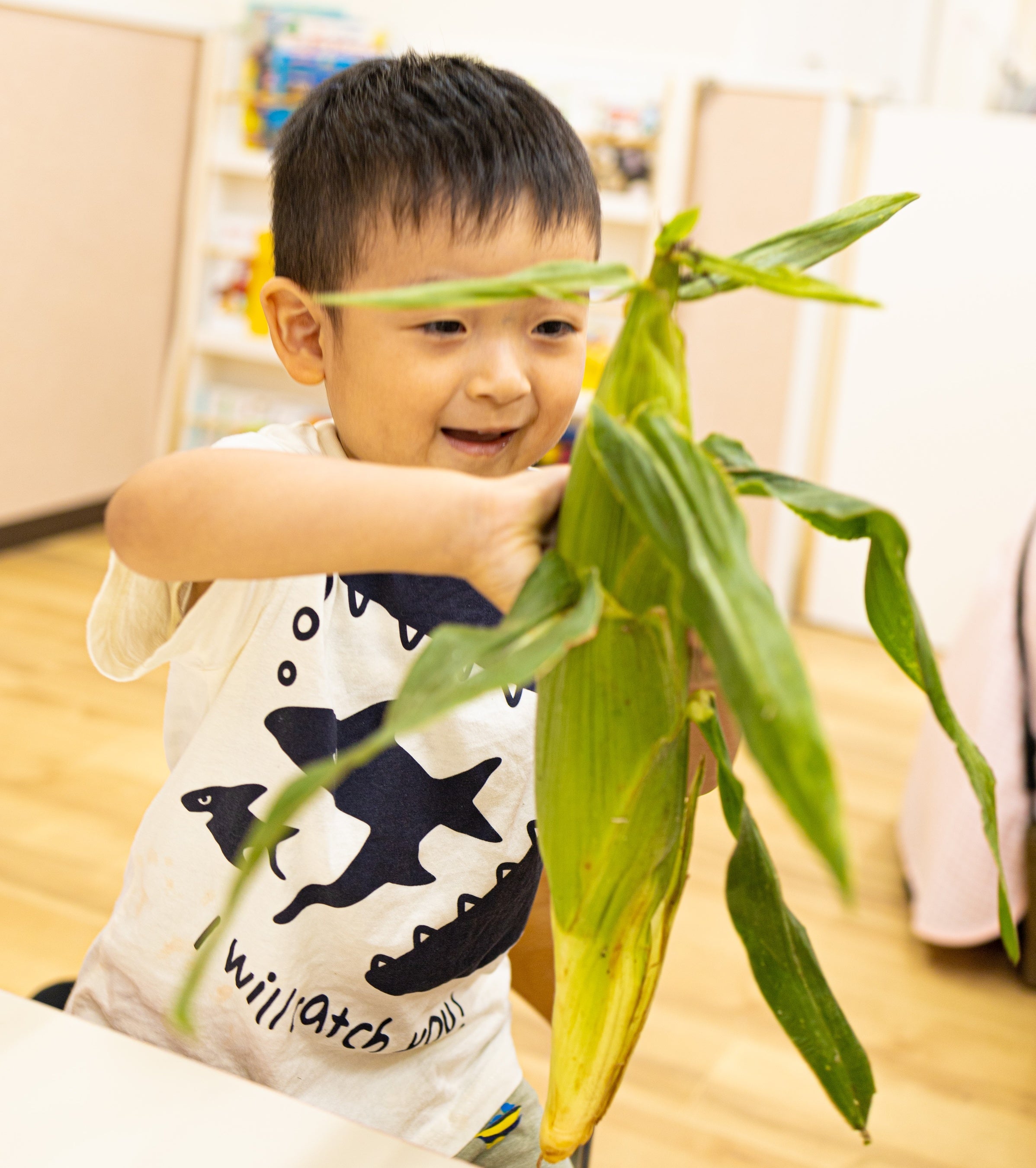 ▲(左から)「すくすくOisix」サービスイメージ、「手づくり給食ミールキット」調理前イメージ、とうもろこしを使った食育プログラム