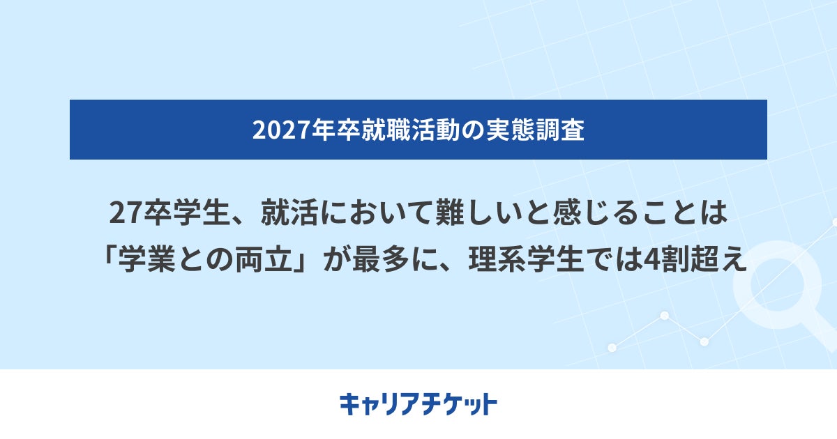 レバレジーズ株式会社が運営する新卒学生向けキャリア支援サービス「キャリアチケット就職」(https://careerticket.jp/) は、2027年3月卒業予定の大学生・大学院生381名を対象に就職活動の実態調査を実施しました。本リリースでは一部を抜粋し、お知らせいたします。