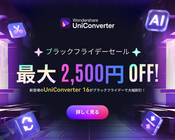 【最大2,500円オフ】年内最大級!ブラックフライデーセール実施中|動画変換ソフト Wondershare UniConverter