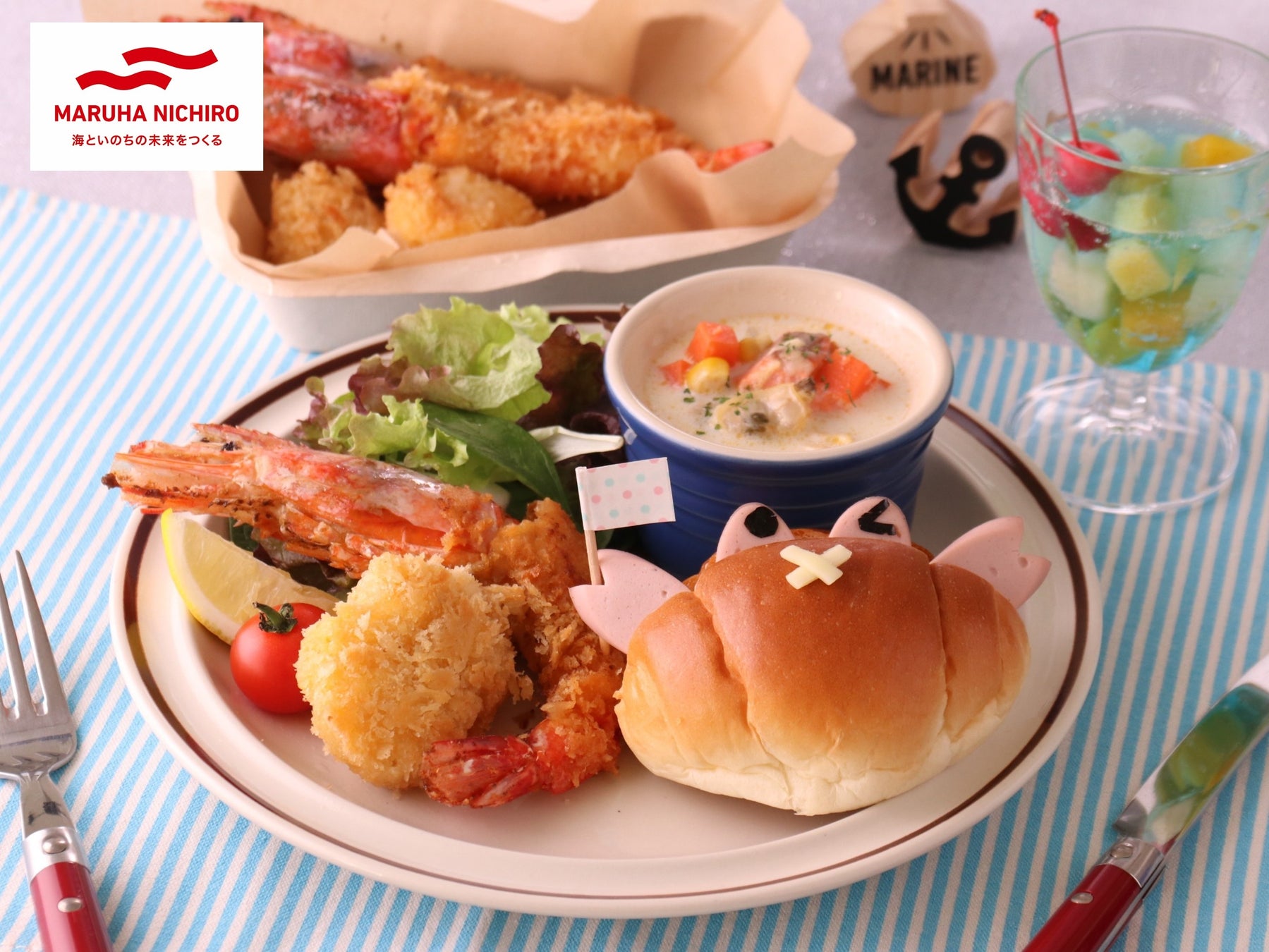 マルハニチロによるお魚セミナーの後はMSC認証(*1)・ASC認証(*2)の水産物を使って、大人も子どもも大満足の豪華お子様ランチプレートを作りましょう。お皿の中は海の中!