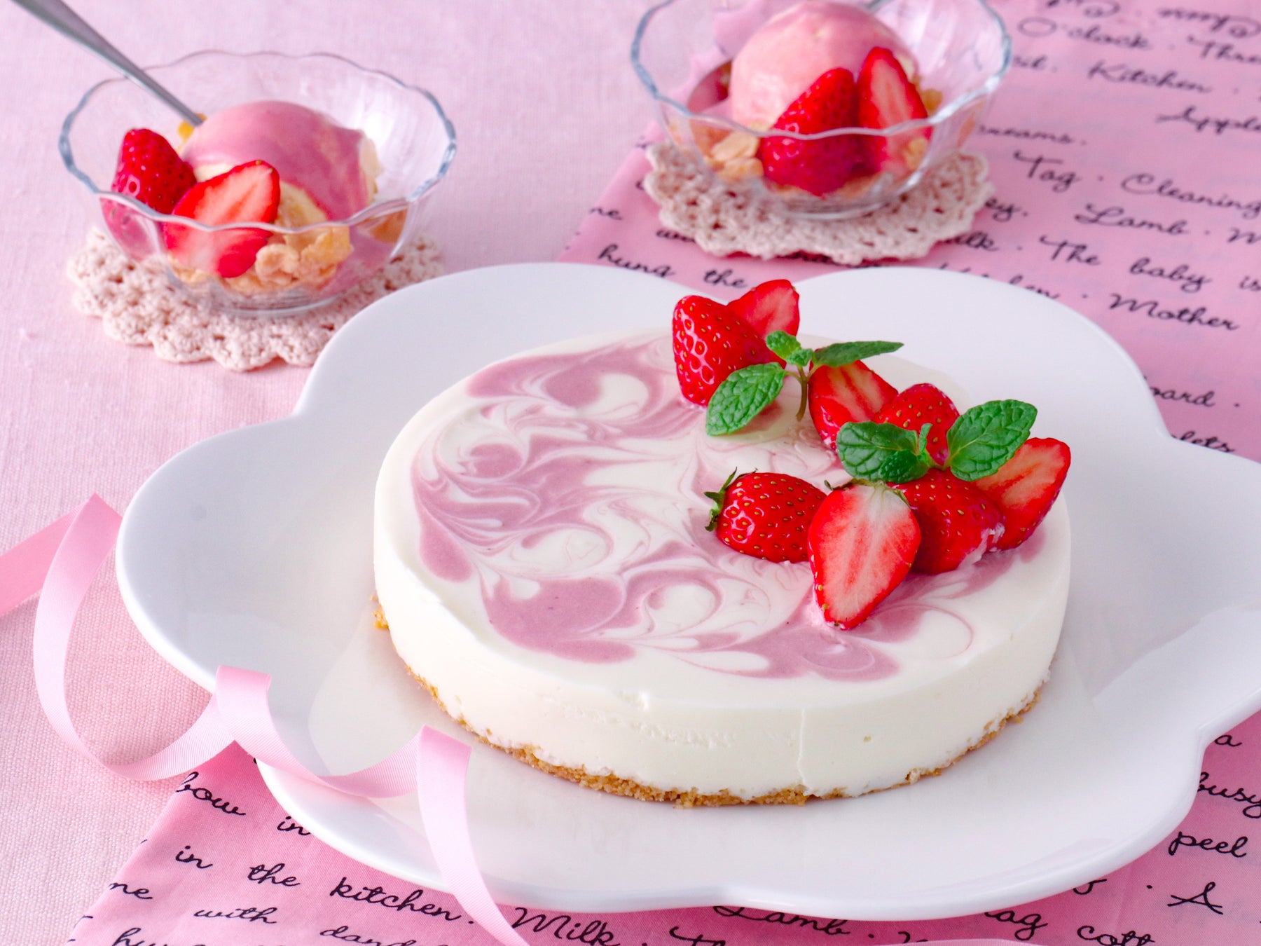 〇いちごのマーブルレアチーズケーキ(直径15cm 1台 持ち帰り)