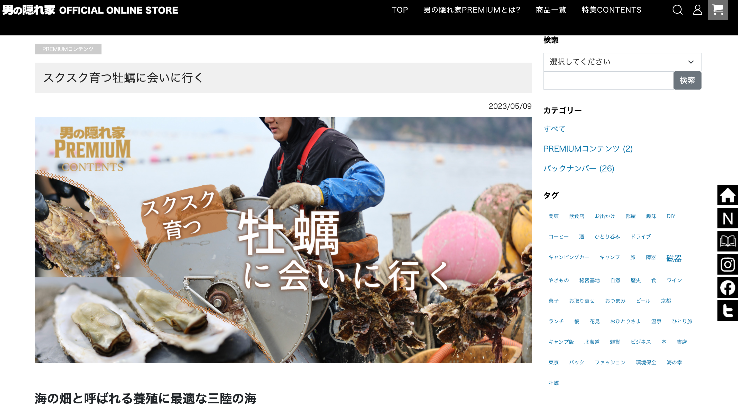 また、月刊誌「男の隠れ家」や「男の隠れ家デジタル」とも連動し、さまざまな人たちが紡ぐモノづくりへの「思い」を丁寧に取材したコンテンツを紹介しています。