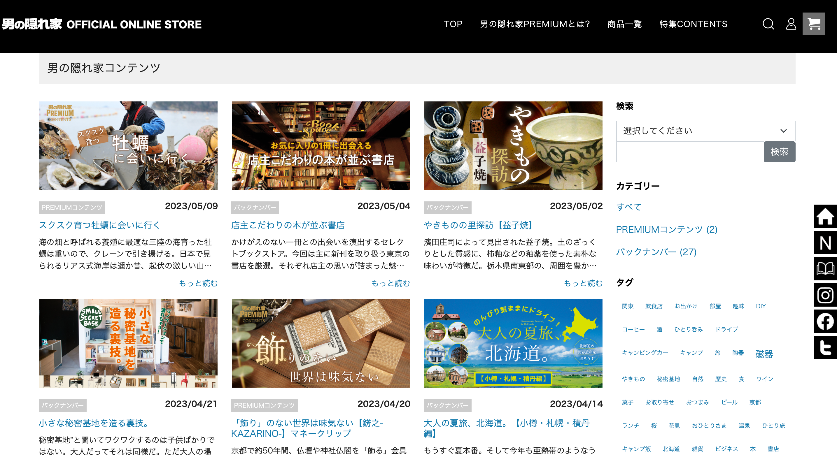 雑誌メディア「男の隠れ家」 の公式オンラインショップ『男の隠れ家 PREMIUM』が登場