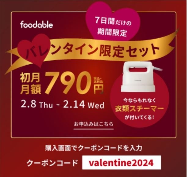 【7日間だけの期間限定】もれなく衣類スチーマーがついてくる!foodableバレンタイン特別セット\初月 月額790円/
