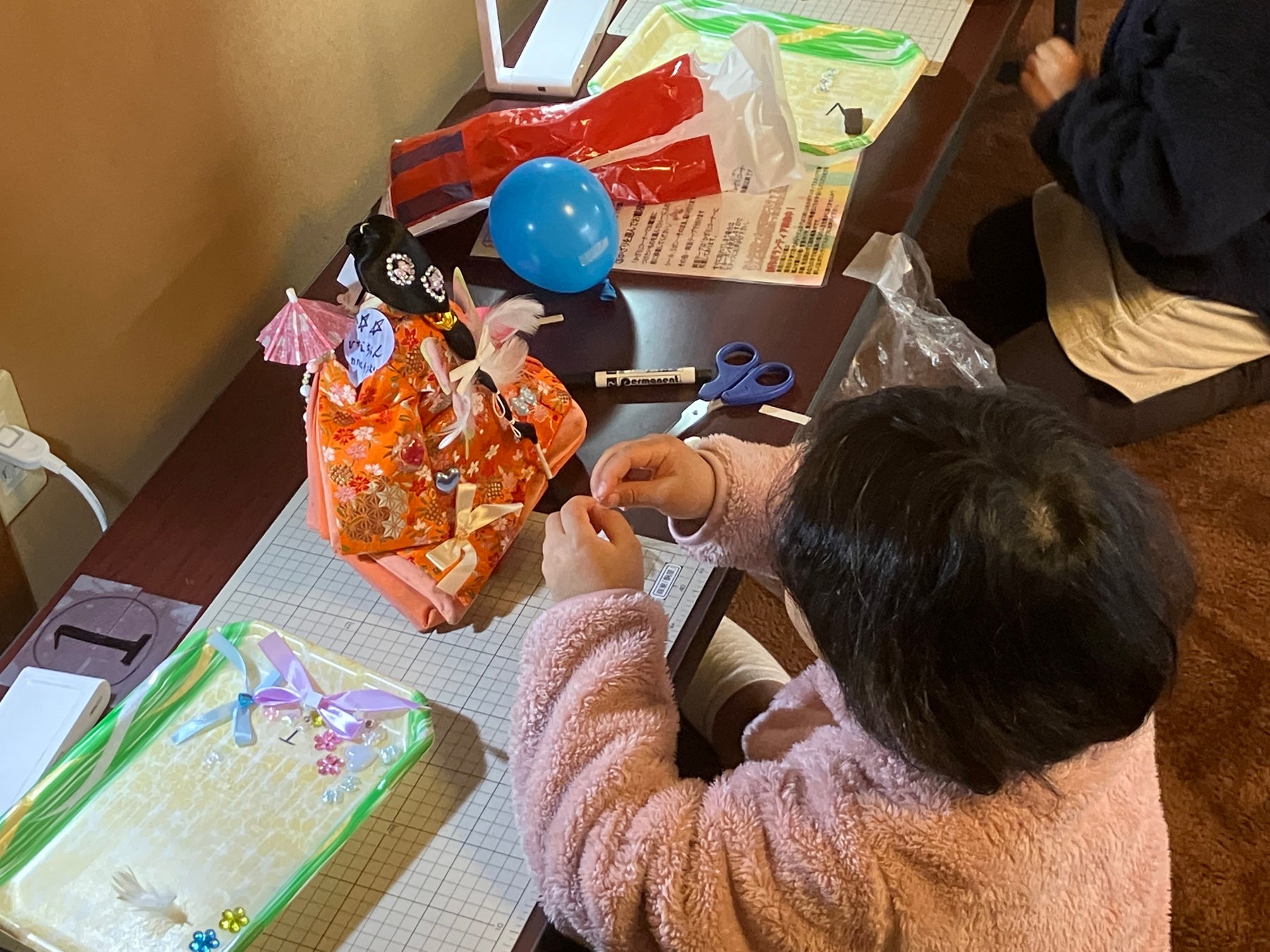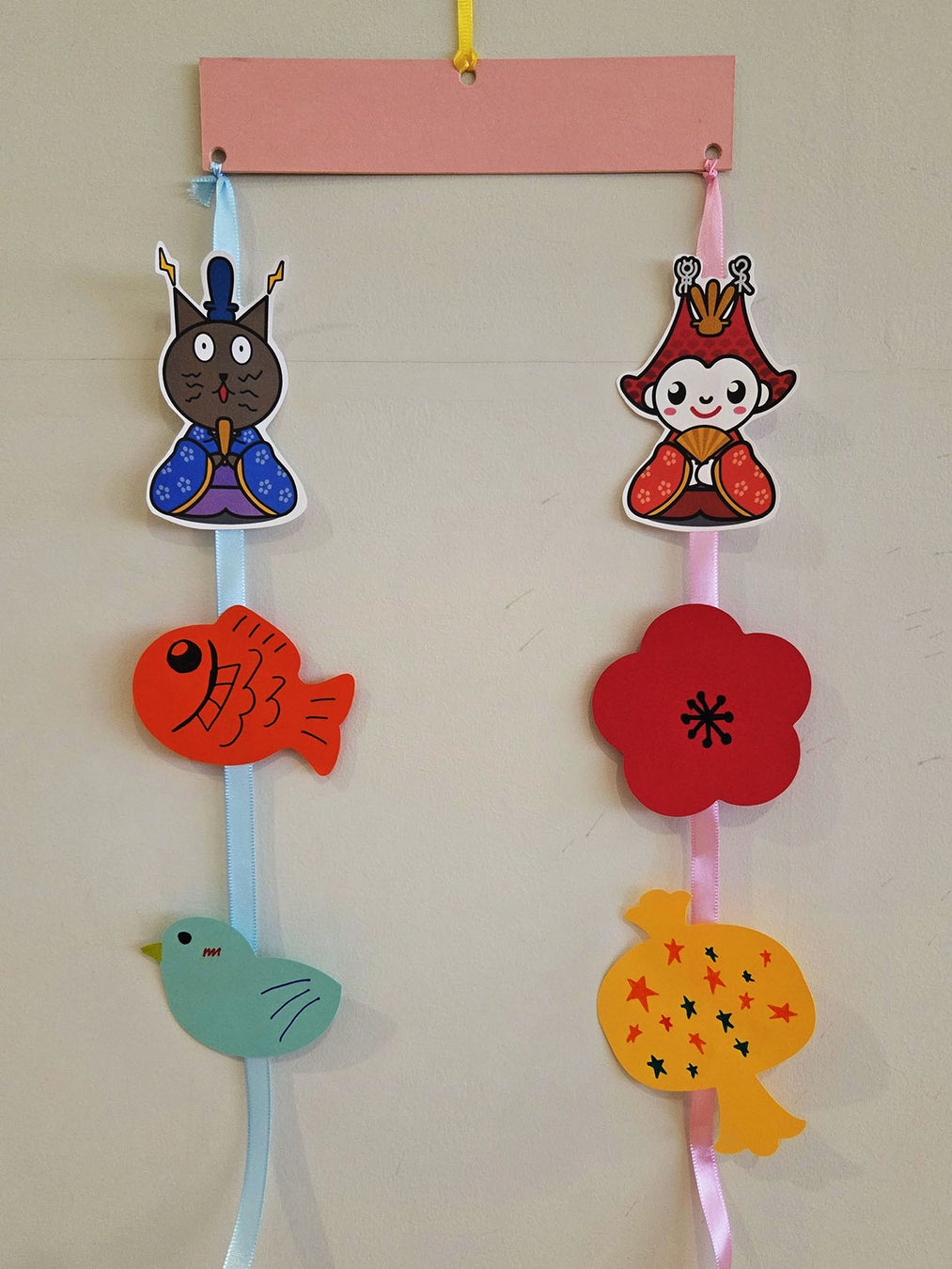 休館中のこども未来館が二川宿本陣に出張し、イメージキャラクターの「ニコリン」と「ココネコ」のつるし雛をつくります。