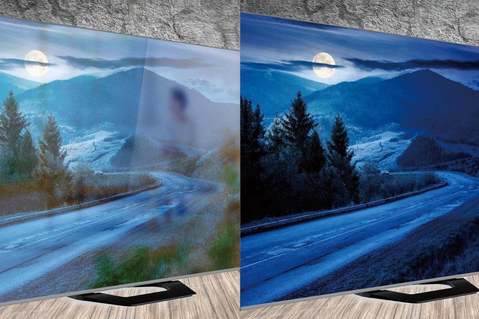低反射パネルを採用することで、室内照明や外光の映り込みを軽減し、明るいリビングでも見やすい画面を実現しました。