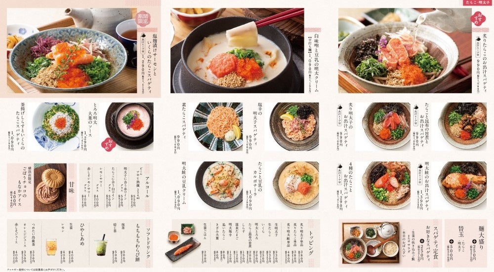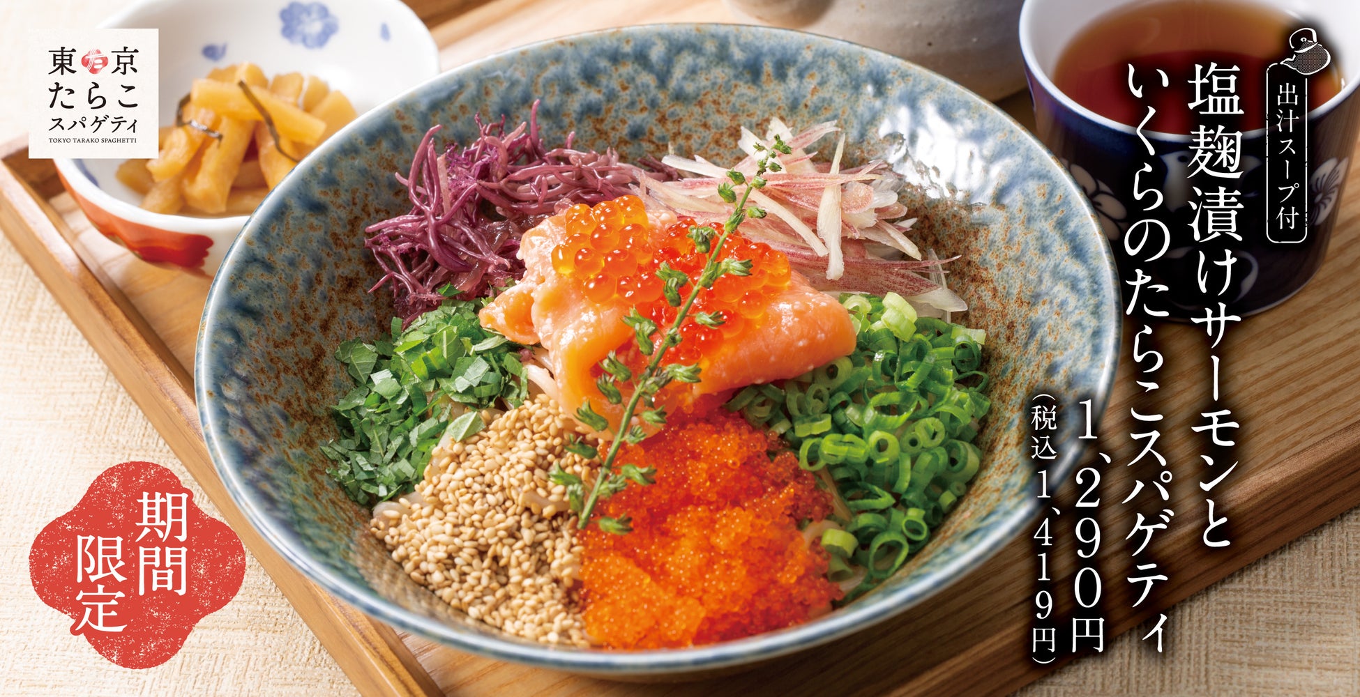 【冬の訪れに】出汁スープでホッと温まる「塩麹漬けサーモンといくらのたらこスパゲティ」と横浜限定「釜揚げしらすと高菜のたらこスパゲティ」東京たらこスパゲティに新登場