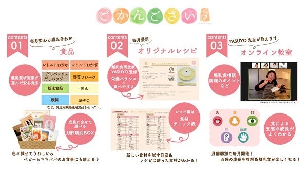 「ごかんごさい」は、離乳食研究家でもあるFUNFAM株式会社の代表である藤岡康代(YASUYO)氏が、自身の育児経験の中で感じた悩みからスタートしたサービスです。生まれた赤ちゃんが安心して食と向き合えるように、無添加・乳児用規格適用食品を一つひとつ手に取り、使いやすさや栄養バランスを考えて選定し、赤ちゃんにとって本当に良いものをキュレーションした離乳食の宅配ボックスです。