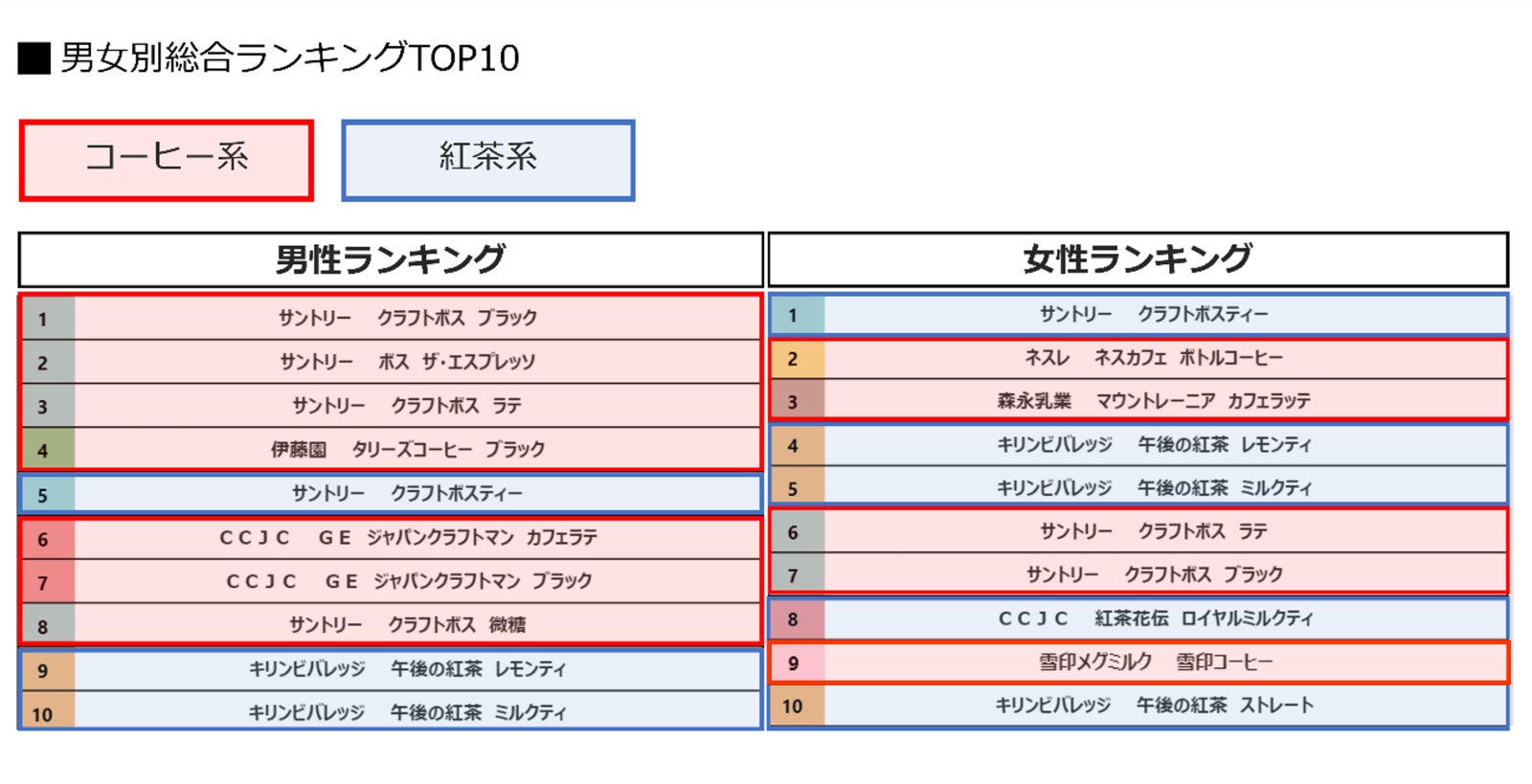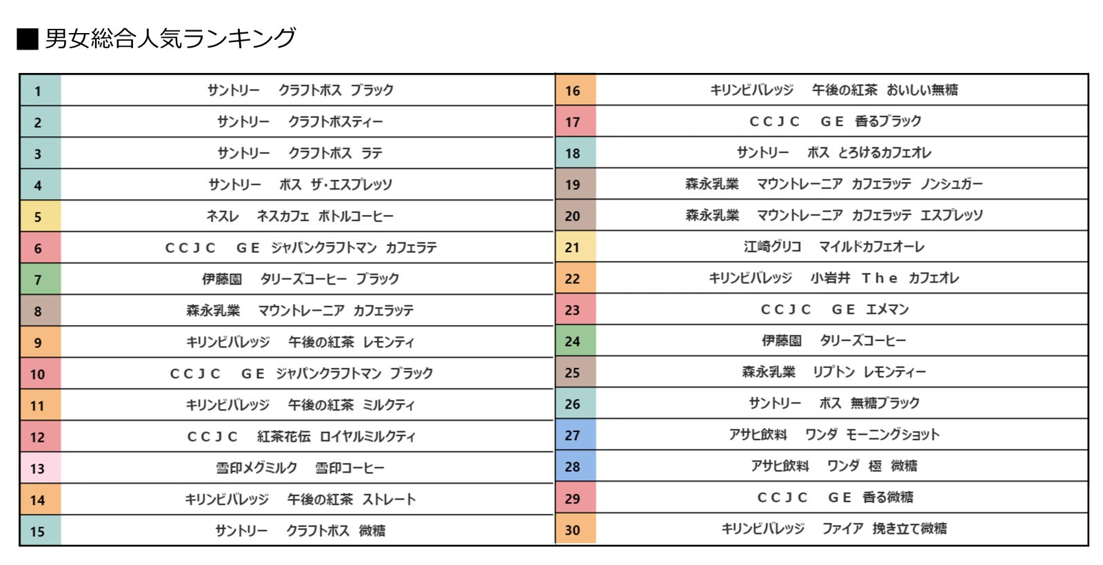 - 【男女総合・購買ランキング】コーヒー・紅茶の総合ランキング(TOP30)