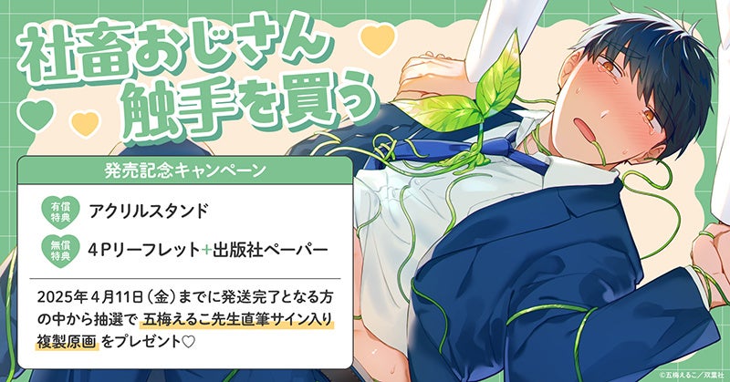 ホーリンラブブックスでは、五梅えるこ先生最新コミックス『社畜おじさん触手を買う』発売を記念して豪華キャンペーンを実施いたします!