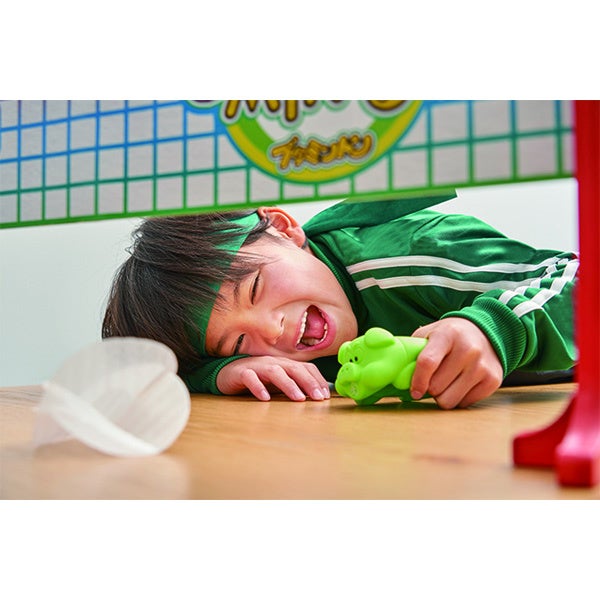 ルールはシンプルながらも、ブタの顔立ちがユニークなラケットは、空気を吹き出そうと押す度に可愛く「ブー」と鳴き、対戦で白熱しながらも笑いがおこり、お子様から大人まで世代を問わず盛り上がる玩具です。