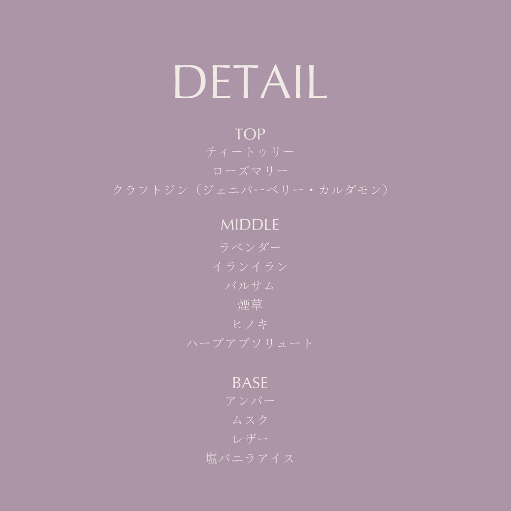 自身のSNSでも、その日の気温に合わせたコーディネイトにプラスして香水の香りを提案しているSleepy boyらしい、甘さと苦さ、パウダリックでウッディ、華奢で奥ゆかしい、男女共に楽しんでいただける香りとなっております。