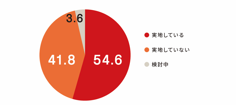 住宅関連の補助は採用に良い影響があると7割以上が回答し、さらに既存社員の離職防止やモチベーションアップに影響するという回答が65%となった。一方で、住宅関連補助の実施は54.6%と約半数という結果になりました。