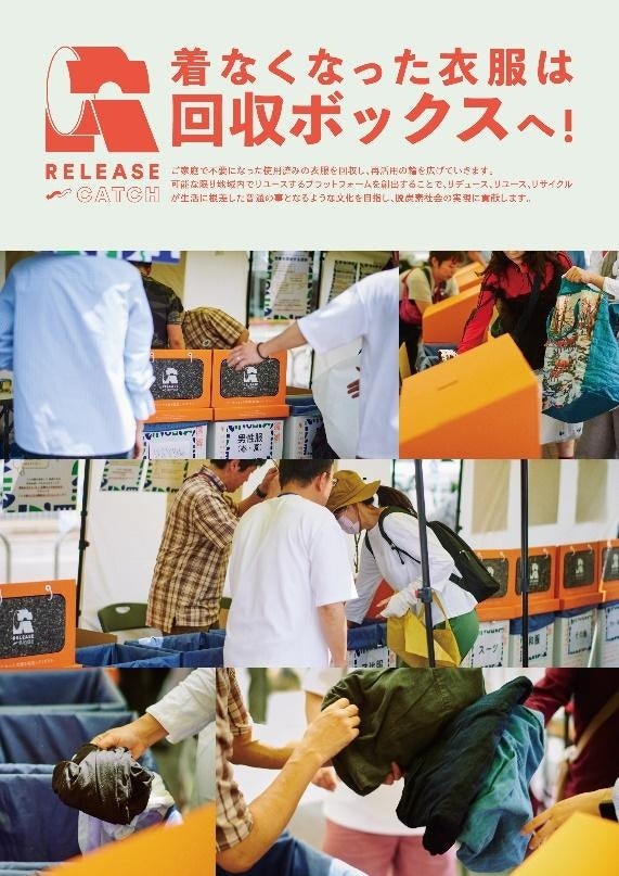 開催内容:「RELEASE⇔CATCH」で回収された古着から、お気に入りのものを3点まで¥0でお持ち帰りいただけます。4回目となる本開催では、前回同様にKUZUHA MALLで回収された衣服のみで開催いたします。古着をお持ち帰りいただくことで参加者の方に循環の輪に加わっていただき、その結果削減されたCO₂の量を計測し、結果を発表します。参加条件として、循環に関する様々な情報をお伝えする「循環ズ」のLINE公式アカウント友だち追加やアンケートをお願いしております。