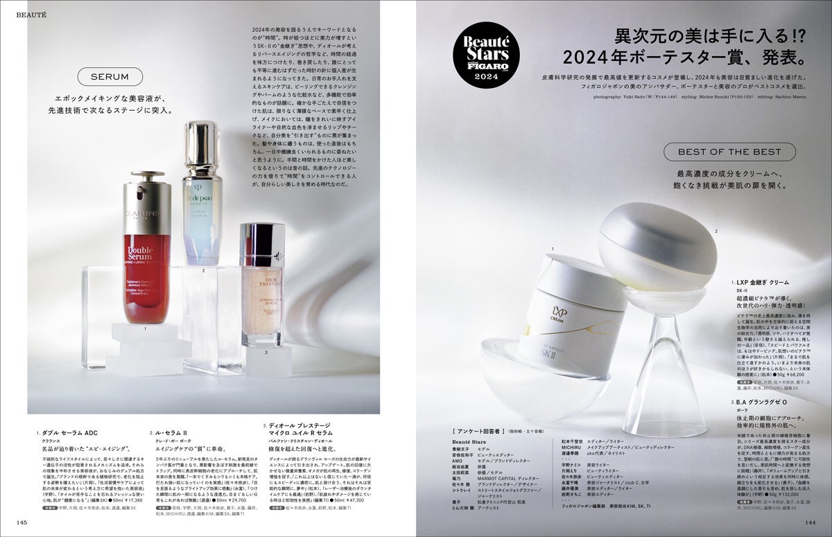 皮膚科学研究の発展で最高値を更新するコスメが登場し、2024 年も美容は目覚ましい進化を遂げた。フィガロジャポンの美のアンバサダー、ボーテスターと美容のプロがベストコスメを選出。