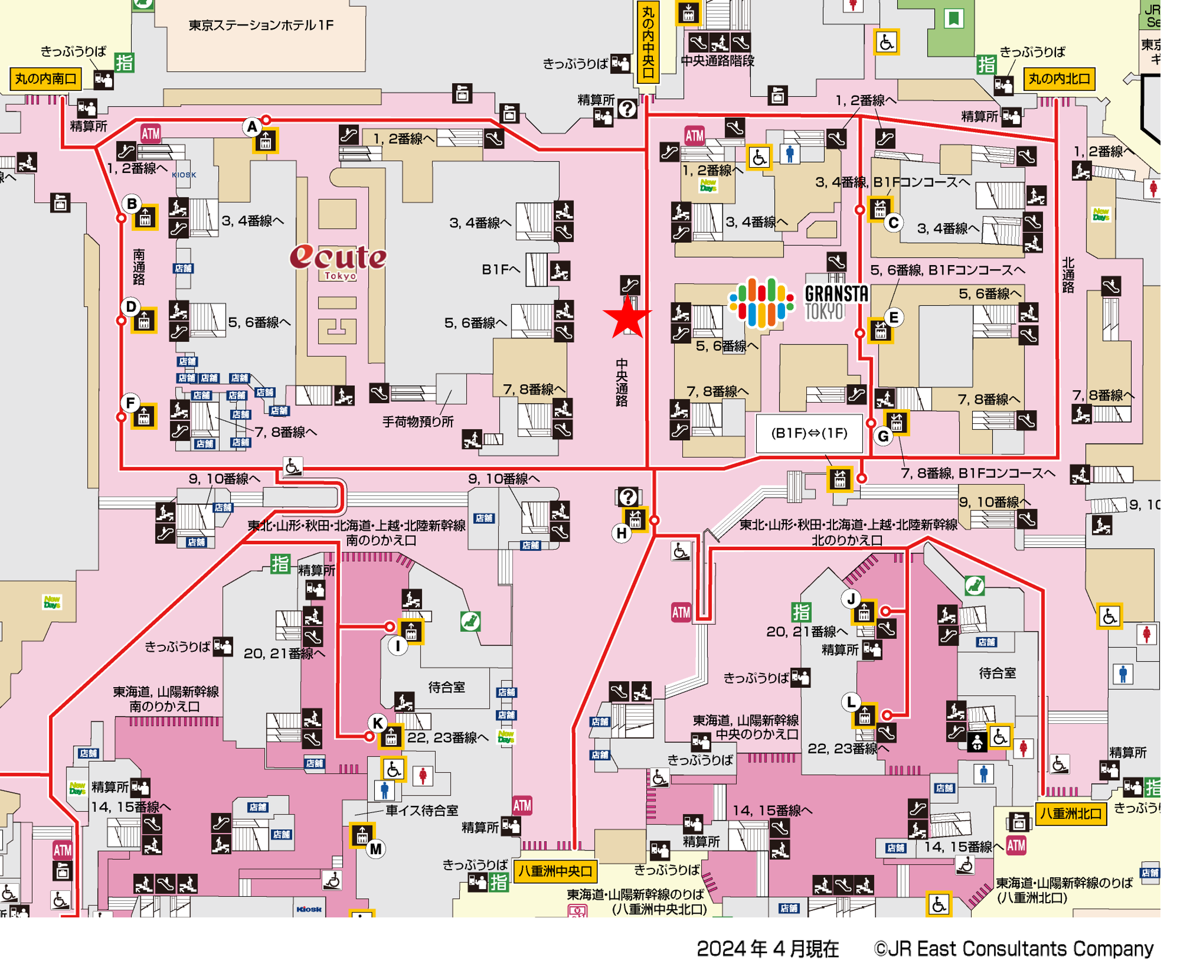 東京駅中央通路(改札内 5・6番線ホーム階段付近)