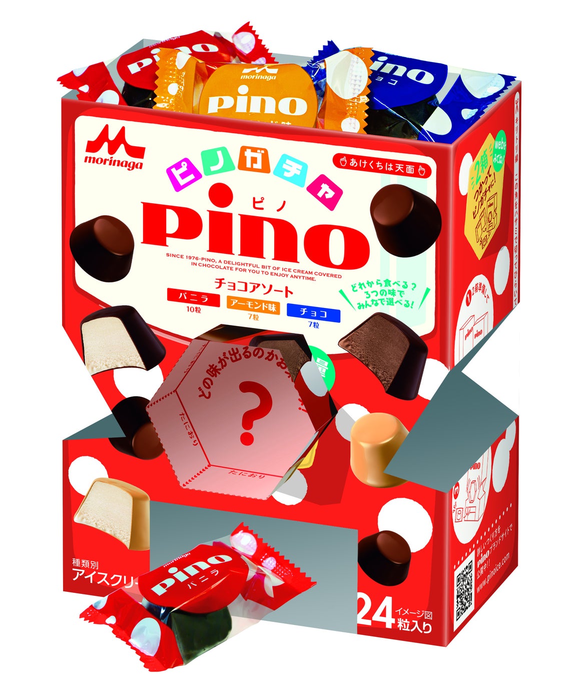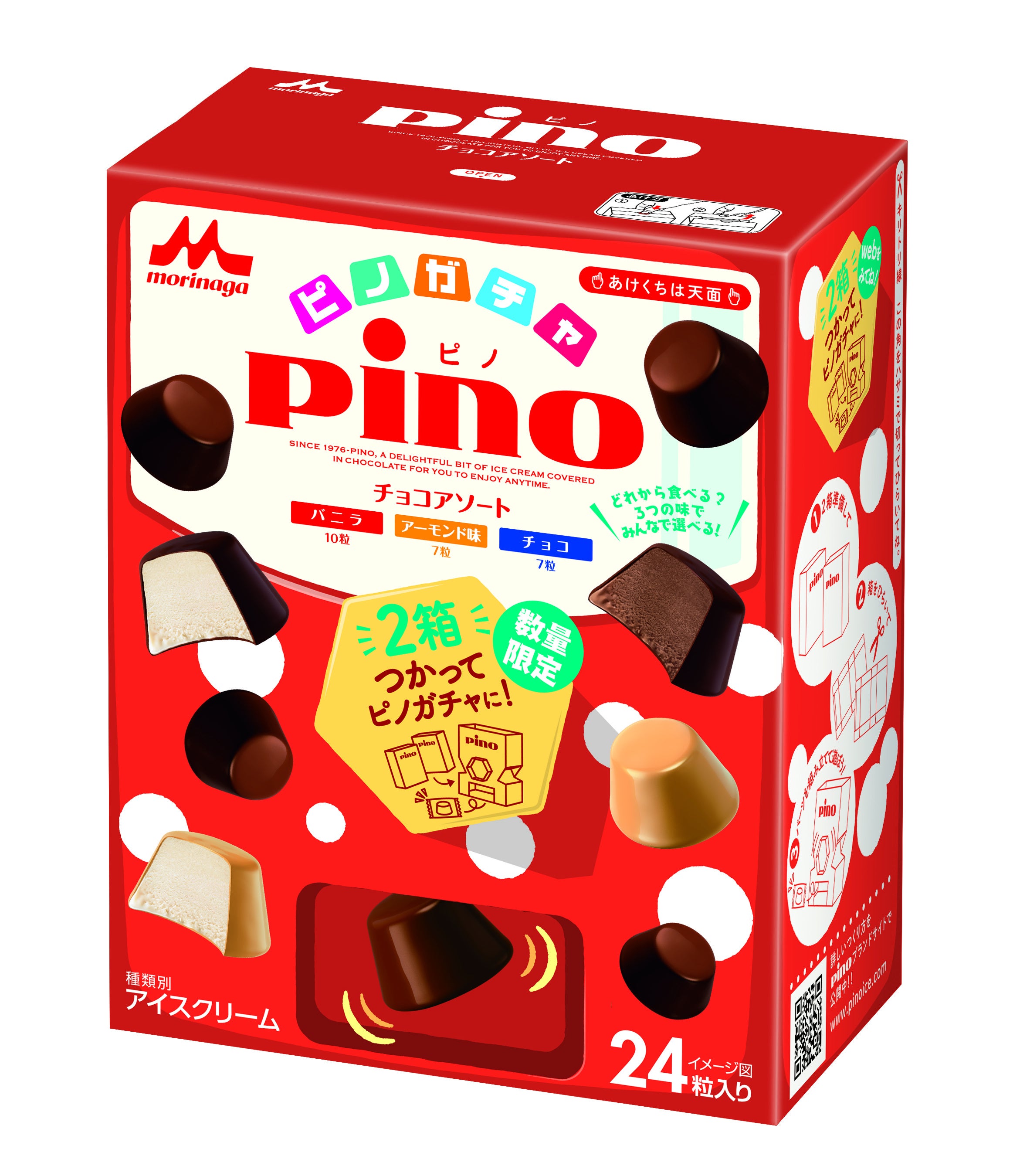 「ピノ アソート(ピノガチャパッケージ)」シリーズのパッケージを2箱使用してつくることができる、個包装の「ピノ」専用のガチャです。