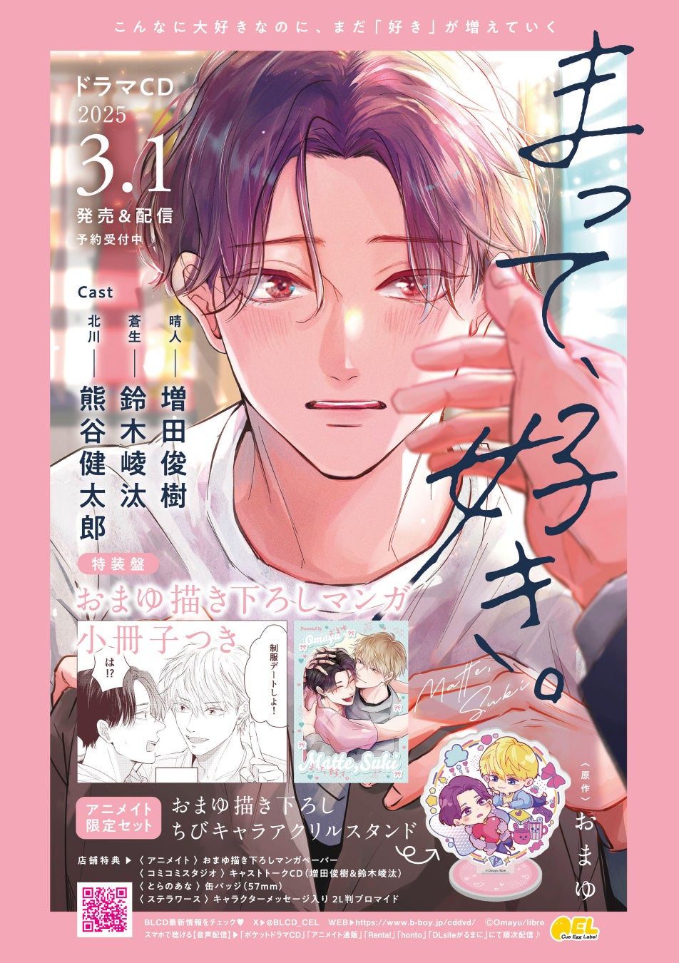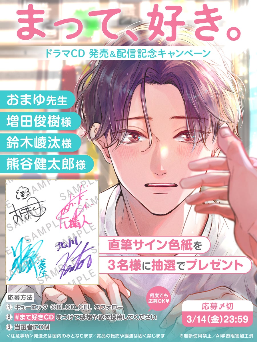 株式会社リブレ(本社:東京都新宿区、代表取締役社長:是枝由美子)は、ドラマCD「まって、好き。」を2025年3月1日に発売致します。https://www.b-boy.jp/special/matte-suki/cd/