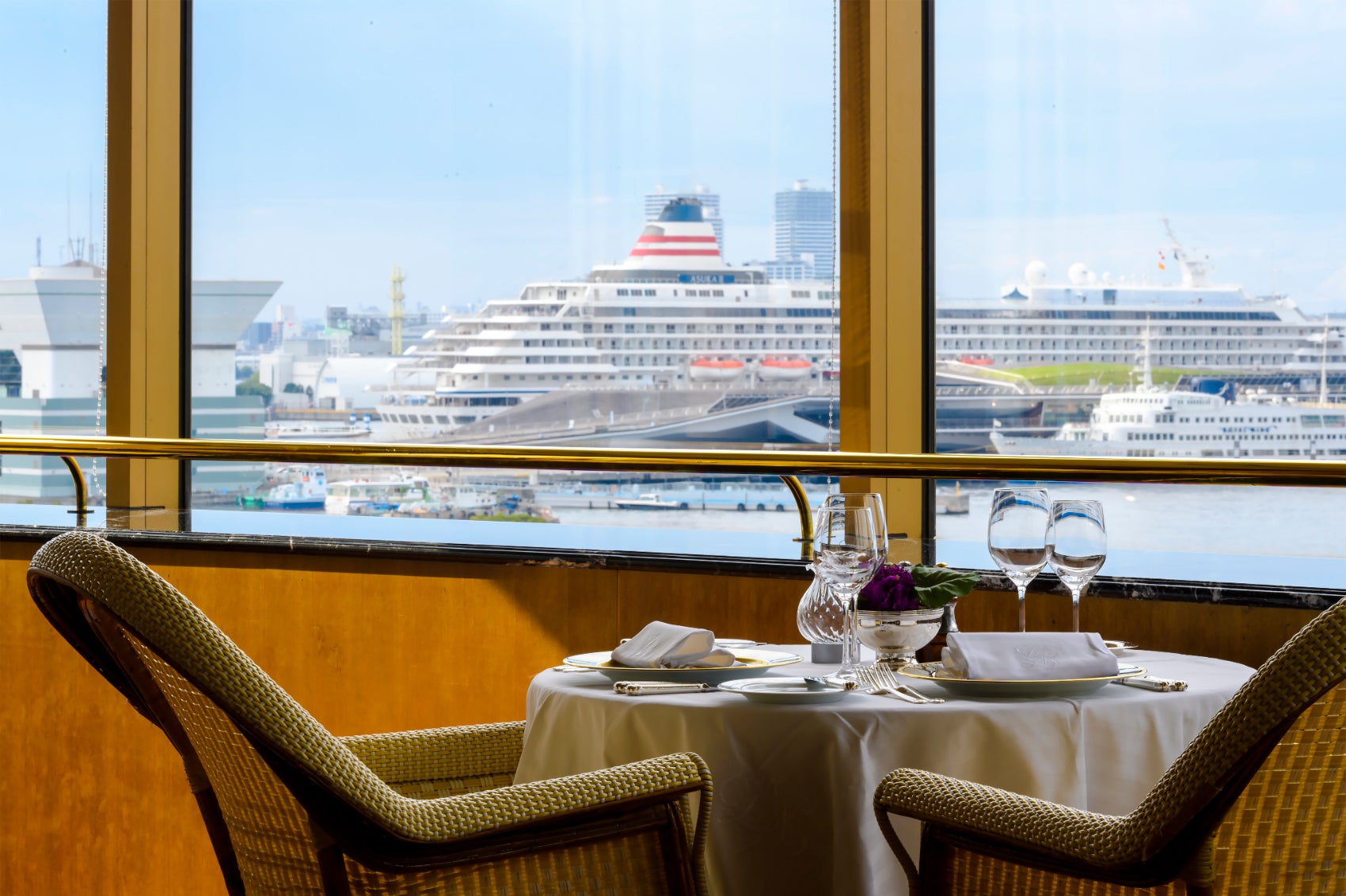 豪華客船をコンセプトにした店内からは横浜港を一望することができ、青い空と海に包まれるような優雅なお食事のひとときをお過ごしいただけます。