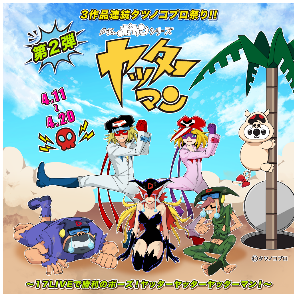 17LIVE株式会社(東京都渋谷区、代表取締役:ジャン・ホンフイ、URL:https://jp.17.live/)が運営する日本最大級のライブ配信アプリ「17LIVE(イチナナ)」は、長きにわたり愛される名作アニメーションを輩出する株式会社タツノコプロ(東京都武蔵野市、代表取締役社長 十川淳)が制作した国民的アニメ、「ハクション大魔王」「タイムボカンシリーズ ヤッターマン」「科学忍者隊ガッチャマン」と連続でコラボレーションするアプリ内イベント、「3作品連続タツノコプロ祭り!!」を2026年4月1日(水)から4月30日(木)まで開催することが決定しましたので、お知らせいたします。