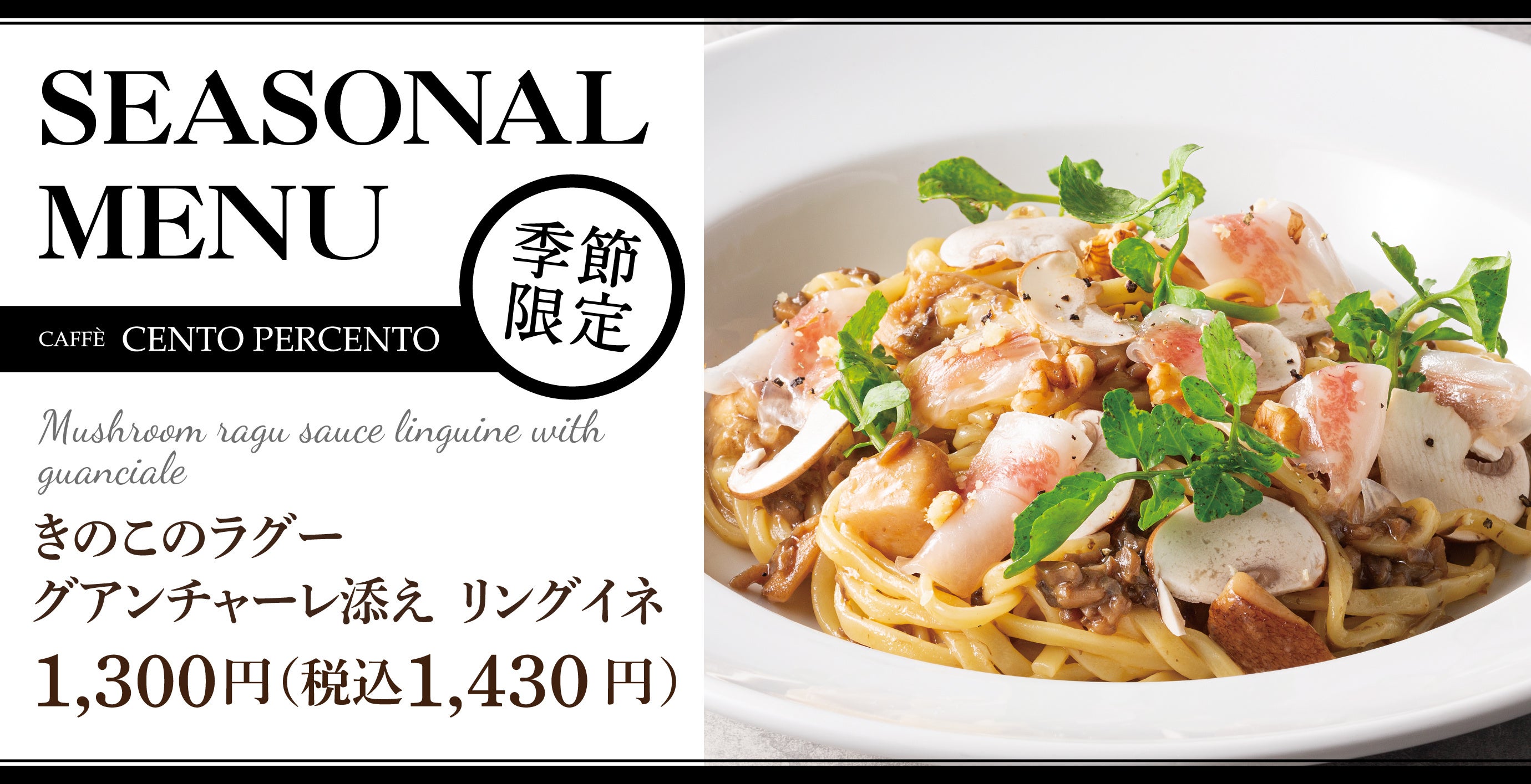 【冬の始まりに】良質な脂の甘さと強い風味「きのこのラグー グアンチャーレ添え リングイネ」がチェントペルチェントに新登場
